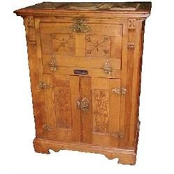 Iceberg icebox, unusual solid ash 3 door w/spoon carving & original ornate brass hardware, Exc. cond