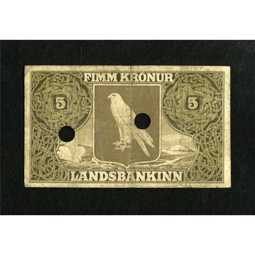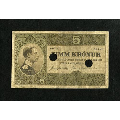 Iceland 5 Kronur 1885 and 1900 (1912) Pick 7b
