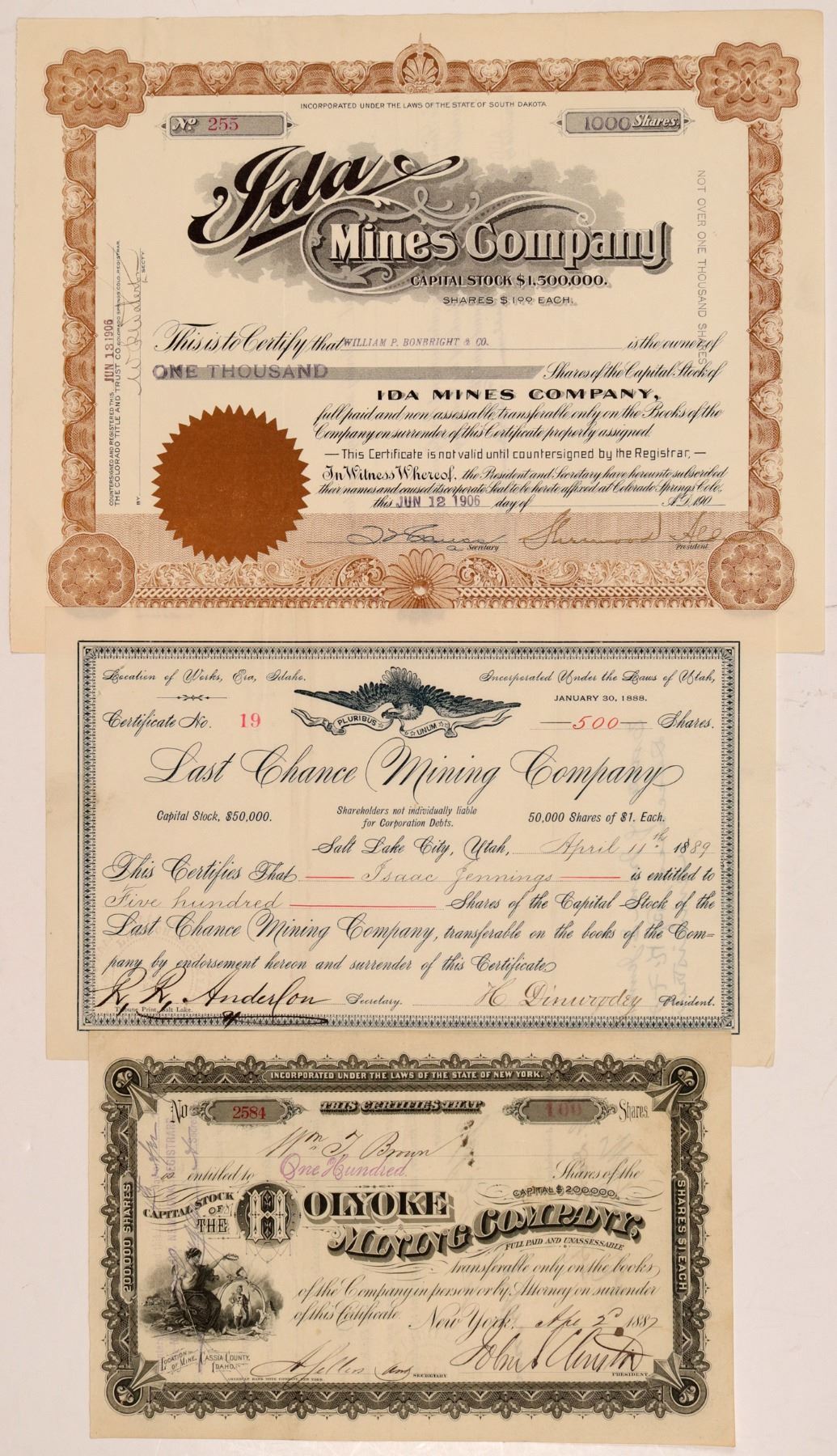 3 I/U. Holyoke MC 1887, Last Chance MC 1889, Ida MC 1906 City: State: Idaho Date: