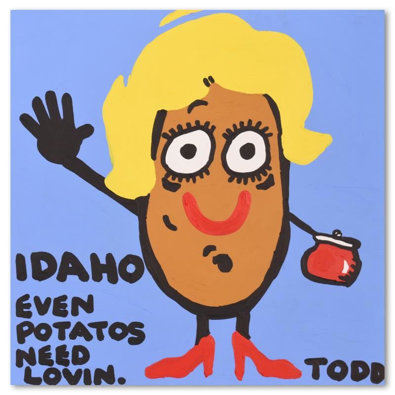 We acquired this piece as part of a larger collection. We do not approve of its inappropriate content. "Idaho" is an original acrylic painting on gallery wrapped canvas by Todd Goldman, hand signed by the artist. Includes Letter of Authenticity. Measures approx. 30" x 30" (image). Due to the way this piece was stored there may be minor wear or signs of age (such as wear on the corners) but the piece is in overall good condition.