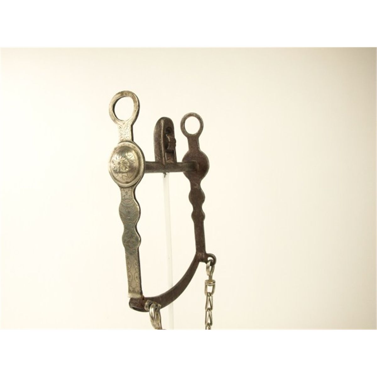 Idaho prison made bit silver mounted including slobber bar with original rein chains.