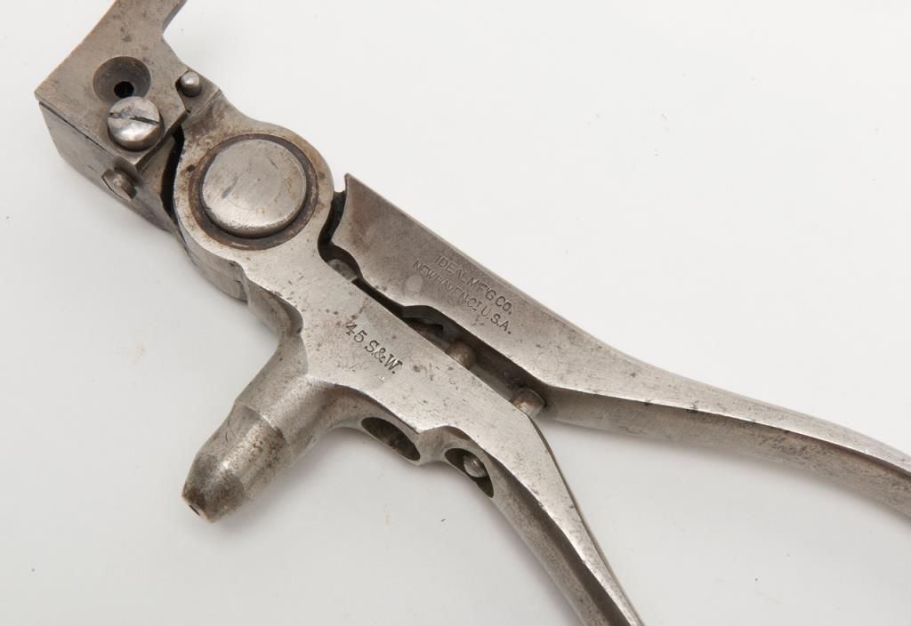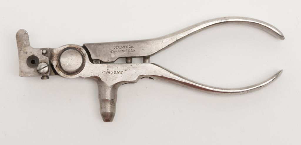 Ideal #4 loading tool, .45 S & W cal., nickel finish, overall good condition. Est.: $300-$400.
