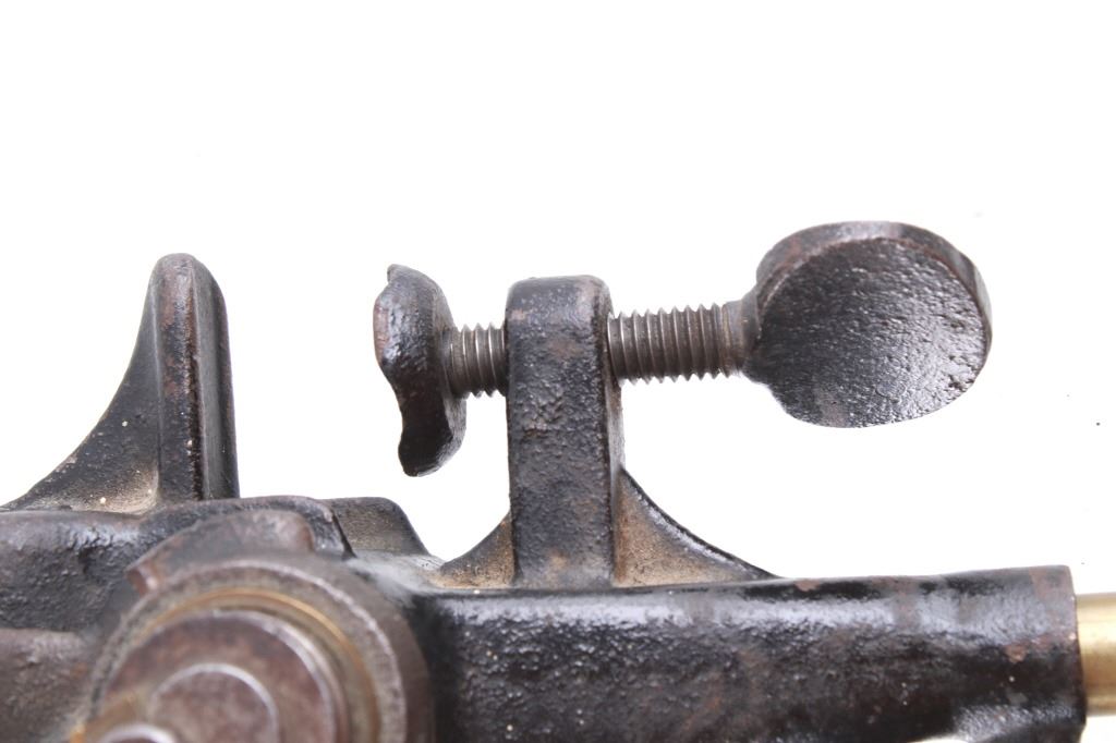 Featured in this lot is this Ideal MFG Co. No. 5 powder measuring tool circa 19th century. The powder measuring tool features a cast iron body with a brass nozzle and and is marked Ideal MFG Co. - Middle-field Conn. USA - No. 5 and marked on the other side with the patent date Aug. 16, 1892 - Oct 1, '95 - Jul 18, '99. The condition of this powder measurer is good with no obvious signs of damage and shows good overall condition. The measurements of this powder measurer are 9 1/4" x 3" x 2 7/8".