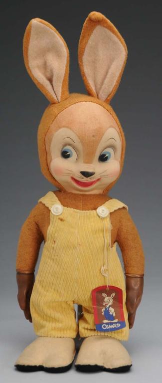 Original Oswald tag on back says "Oswald the Rabbit Copyright Walter Lance Productions Manufactured by Ideal Novelty & Toy Company New York". Tag has some creasing. Condition (Very Good). Size 20" T.