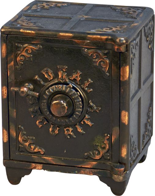Ideal Security Small Cast-Iron Combination Lock Safe w/ Nice Original Copper Flash - 3" x 4" x 5"