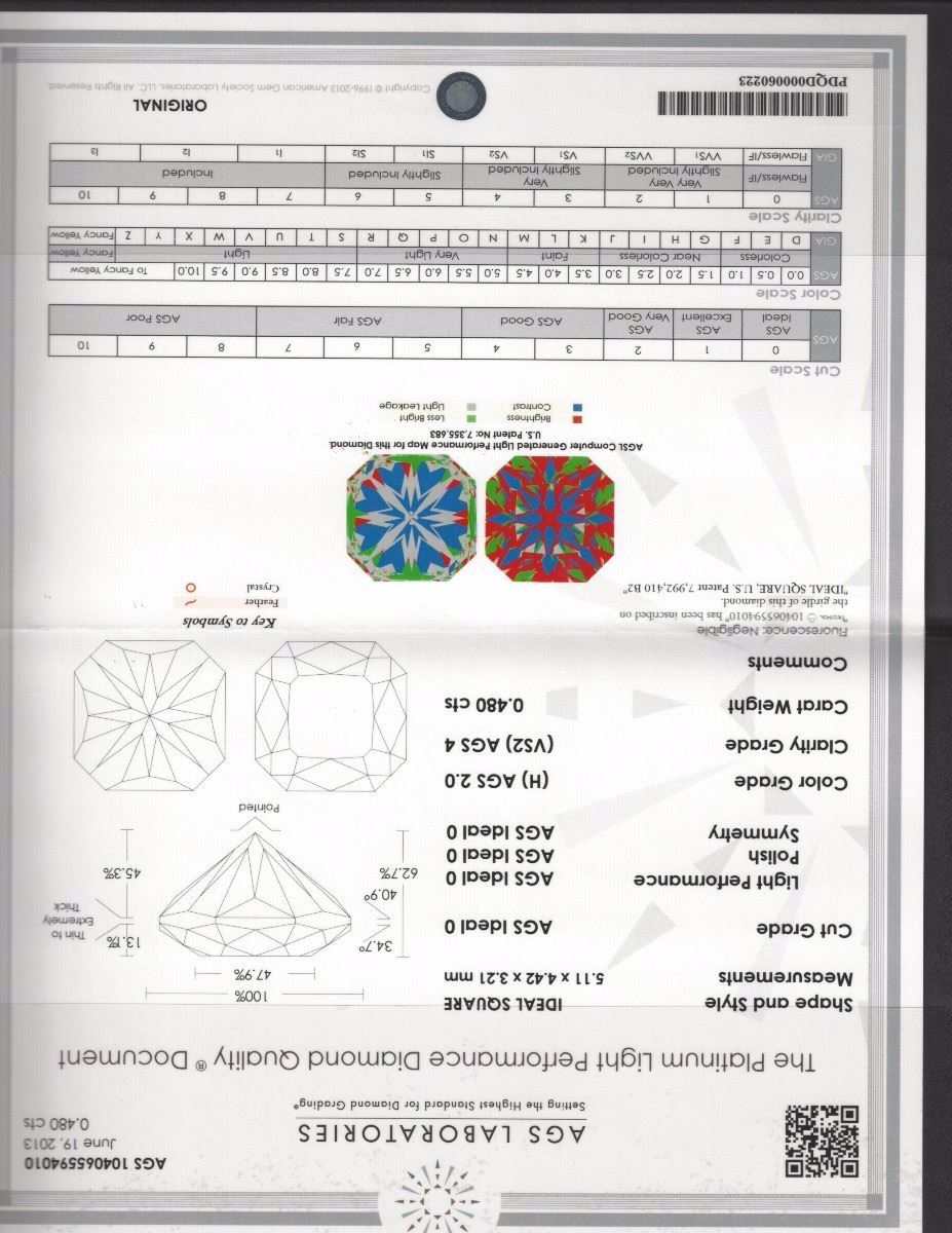 This gorgeous Ideal Square Diamond Necklace has a .48 ct. VS2 H diamond in the center and is mounted in an 18k white gold setting. CERTIFIED!!!!