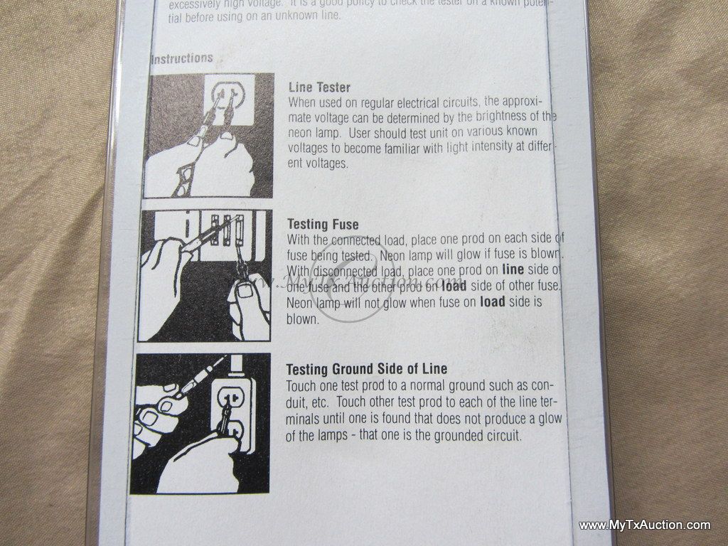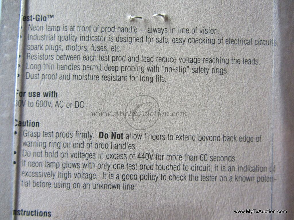 electrical circuits, spark plugs, motors, fuses and more. It has a neon lamp at the