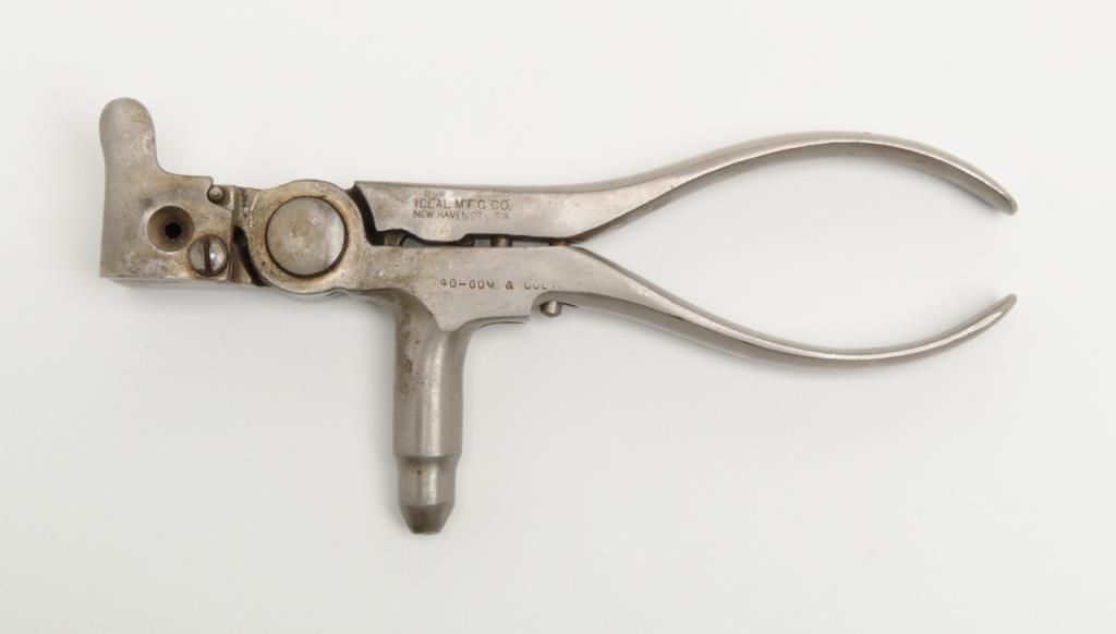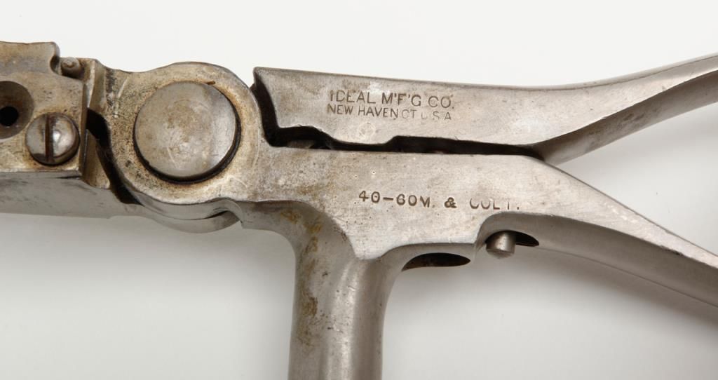 Ideal combination bullet mold and loading tool for 40-60 Marlin and Colt, frosty nickel finish, overall very good condition. Est.: $440-$500.