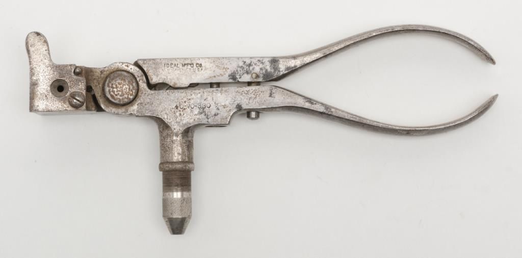 Ideal combination loading tool and mold marked .40-70-330 and 40-90-330 in good original condition with 50% to 70% original nickel. Some erosion and pinprick pitting with normal aging and use. Mold cavity is very good. A scarce loadingtool. Est.: $250-$500
