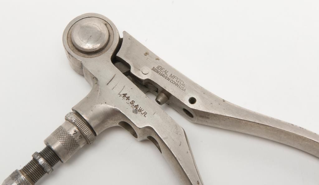 Ideal loading tool for .44 S&W Russian, frosty nickel finish, good condition. Est.: $85-$170.