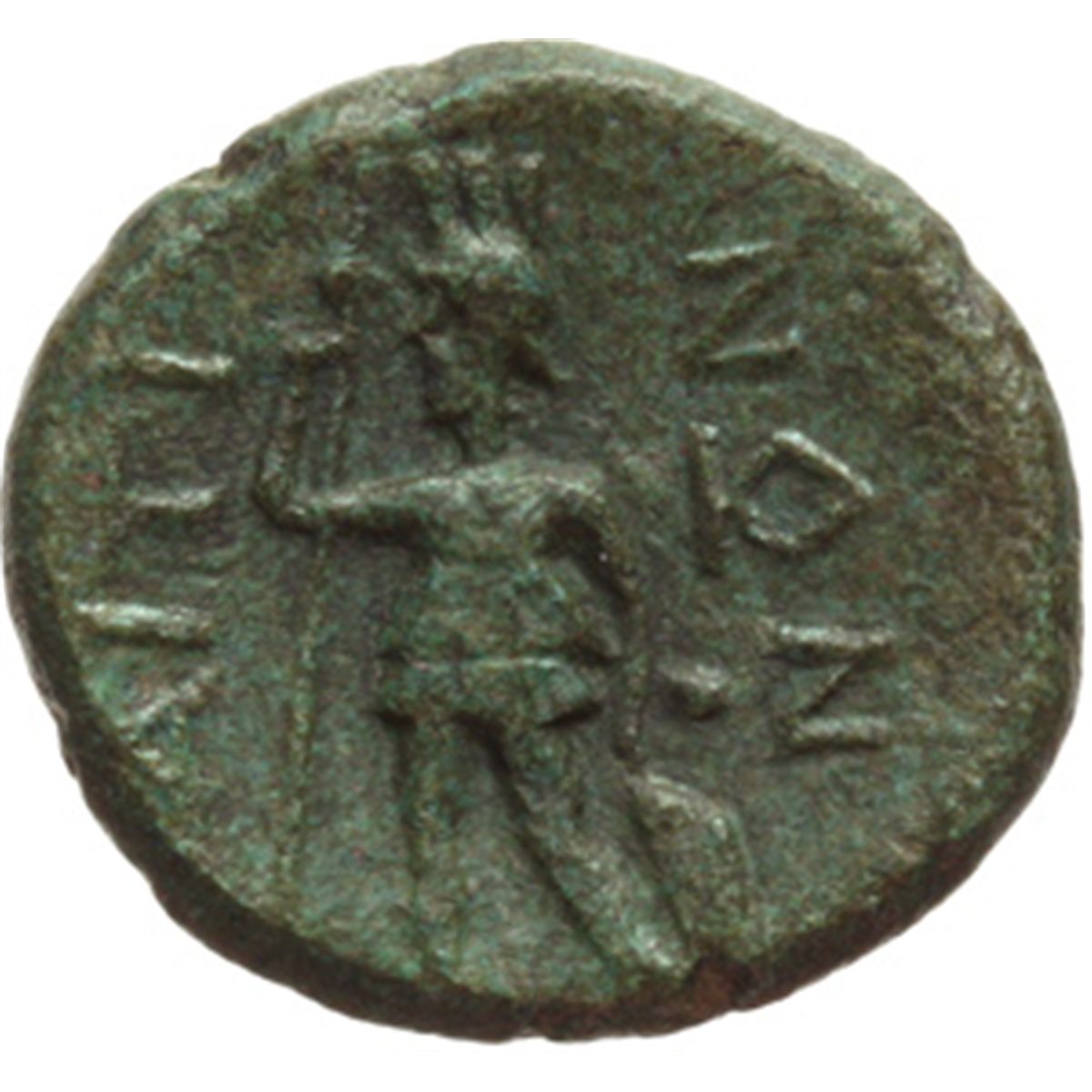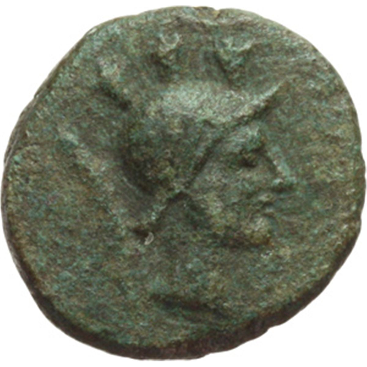 Mondo Greco. Sicilia. Ietas. Semis, ca.100-30 a.C. D/ Testa di giovane guerriero a destra, che indossa galea con tre creste. Dietro, ramo di palma. R/ IAITINΩΝ. Guerriero con galea a tre creste stante a sinistra tiene lancia, scudo e spada. Campana 6B. Calciati I,4. AE. g. 3.48 mm. 15.00 R. qSPL/SPL.