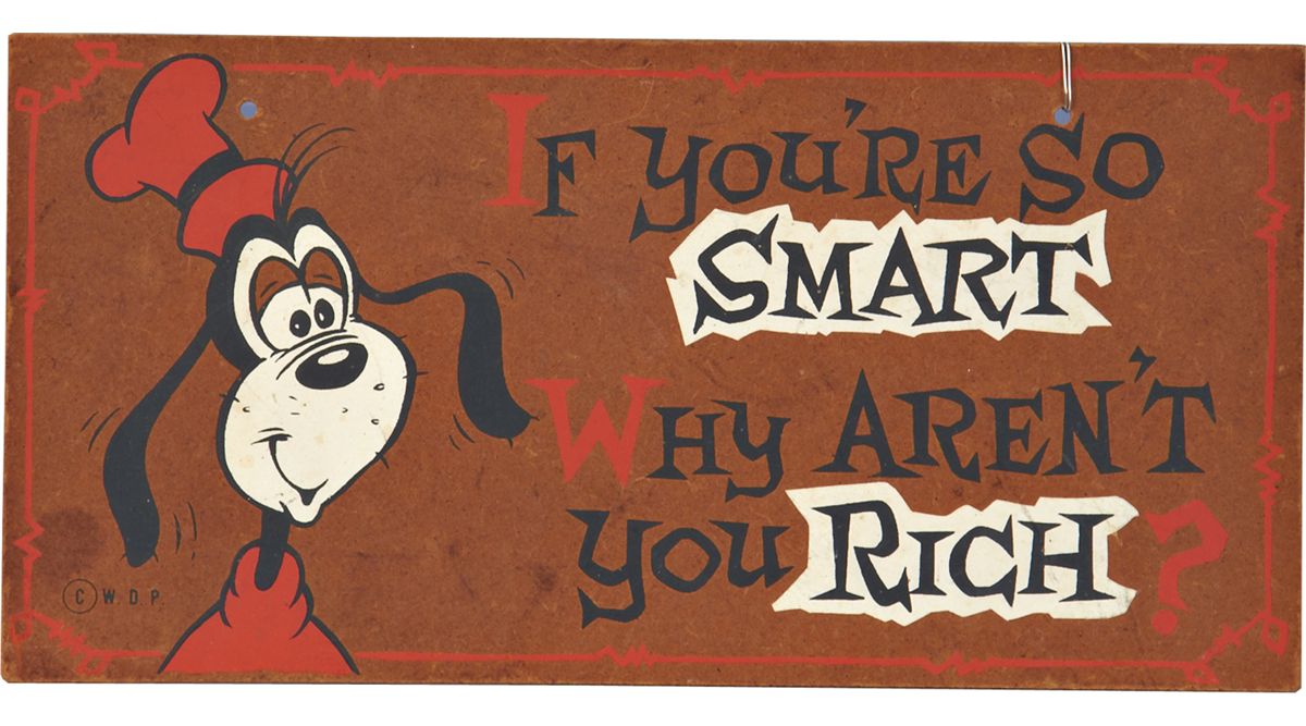 "If You're So Smart, Why Aren't You Rich?" Goofy Particle board Wall Mount Sign, copyright W.D.P. (Walt Disney Productions) - 12"w x 6"h