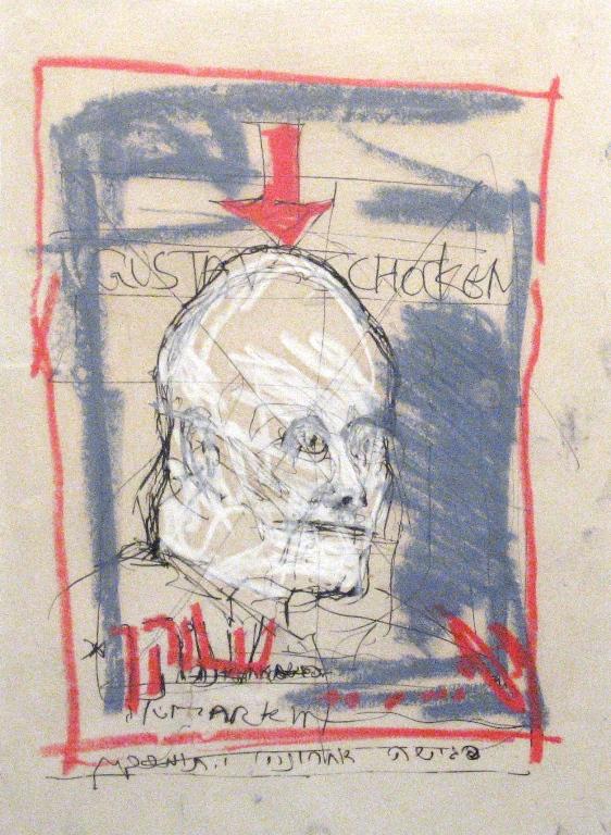 Igael Tumarkin, Israeli Art, B. 1933, Last Meeting, Portrait of Gustav Schoken, Ink and pastel, 38x29cm, Signed., , , The collection of Adam Baruch., ,