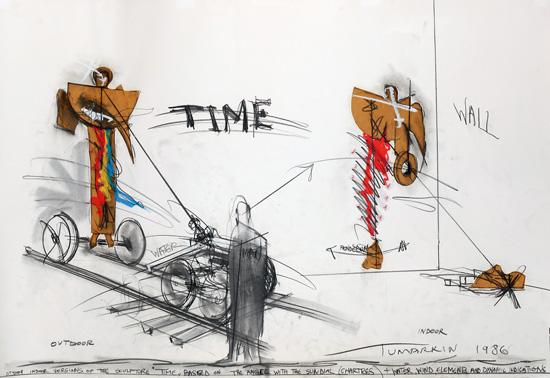 Igael Tumarkin, Israeli Art, B. 1933, Time, 1986, Collage and mixed media on paper, 80x120cm, Signed, dated and titled., , , , , item from abroad