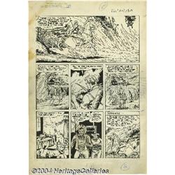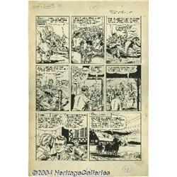 <B>Iger Shop Studios - Whiz Comics #130 Complete 8-page Story "Golden Arrow and the Race Against Death" Original Art (Fawcett, 1951).</B></I> When a friend's life is in danger, Golden Arrow, the Robin Hood of the Old West, throws all caution to the wind and risks his own life to save him! It's a grim fight for the daring hero as he battles gunslinging owlhoots and the unpredictable elements in the race against death! Dark, moody artwork from the reliable Iger Shop (who provided content for many comic books of the day), this is an exciting adventure set in the Old West. The pages measure 15" x 22" and are in Excellent condition, except for the last page, which has a large tear in the seventh panel. Still, a superb artifact of the Golden Age, and a fun story for the aficionado. 8 Original Art <BR><BR><B>Important notice:</B> Heritage usually auctions material at the rate of 200-250 lots per hour. On some occasions eBay Live bid software or the Internet may not be able to keep up with the pace of the auction. We recommend placing a realistic absentee bid now as insurance to avoid disappointment. Occasionally the auctioneer may eliminate or reject an eBay Live bid, and the auctioneer may also reopen a lot after the close of the eBay live bidding (usually because we missed an audience bid), and may reject your bid even if it shows you as the winning bidder. By bidding via eBay Live, you agree that Heritage may award the lot to another bidder at its sole discretion under the circumstances described above or any other reasonable circumstances. Since eBay bids are not shown to us until we open the lot on the floor, we treat those bids just like floor bids. In most cases the floor responds before the eBay bid is presented to us, due to Internet lag time, so for consistency we have made it a policy that floor bids are always considered first over tie eBay live bids. Also please note that all Heritage lots purchased through eBay Live carry a 20% Buyer's Premium. Please make sure you read the Terms and Conditions before you bid.