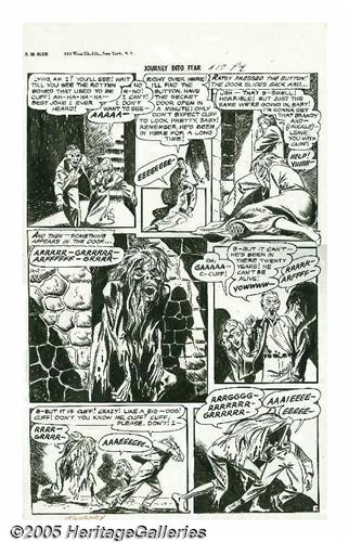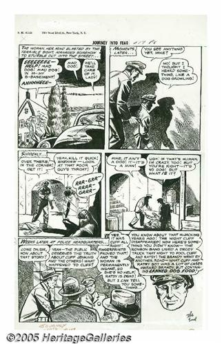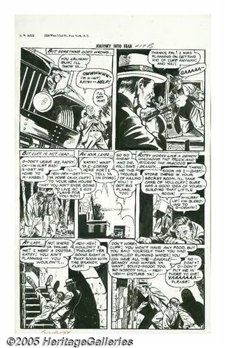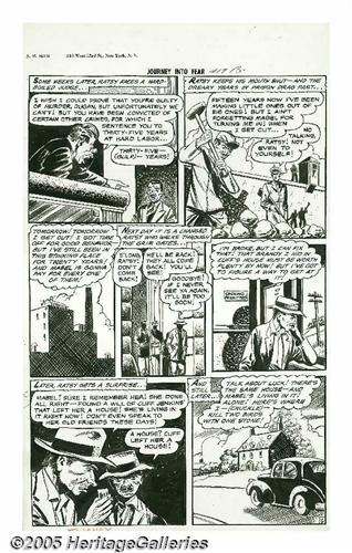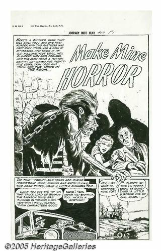 <B>Iger Studio Artist - Journey Into Fear #17, Complete 8-page Story, "Make Mine Horror" Original Art (Superior-Dynamic, 1954).</B></I> Here's a witches brew that will chill you! Mix one part murder with two partners who hate each other, add a dash of bitterness, and let stand for twenty-five years, then open and you'll find this horrific pre-code eight-pager! Drawn by an Iger Studio artist, these eight spooky pages will take you into a hidden room of horror, filled with shadows, and the cold chill of revenge. The image area of each page measures 12" x 18" and the art is in Excellent condition.