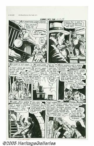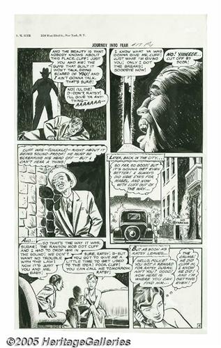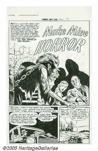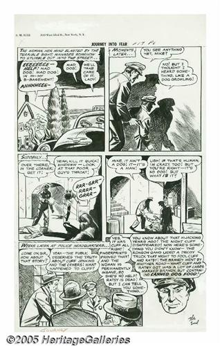 <B>Iger Studios Artist - Journey Into Fear #17, Complete 8-page Story, "Make Mine Horror" Original Art (Superior-Dynamic, 1954).</B></I> Here's a witches brew that will chill you! Mix one part murder with two partners who hate each other, add a dash of bitterness, and let stand for twenty-five years, then open and you'll find this horrific eight pager! Drawn by an Iger Studio artist, these eight spooky pages will take you into a hidden room of horror, filled with shadows, and the cold chill of revenge. The image area of each page measures 12" x 18" and the art is in Excellent condition.
