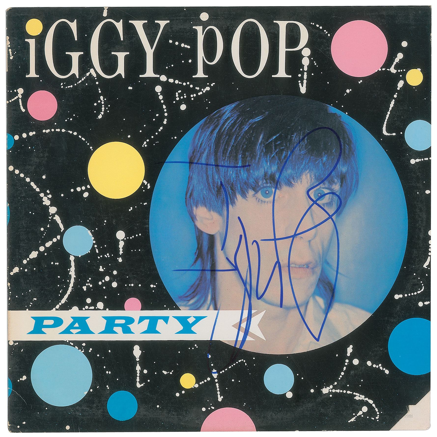 Party promotional album by Iggy Pop, who has signed the front cover in blue felt tip. In fine condition, with a clipped lower right corner. The record is included.