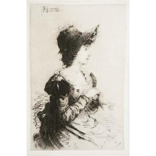 7653 Ignaz Marcel Gaugengigl (1855-1932) Etching "Lady" Signed upper left in plate 7 1/2" x 5"