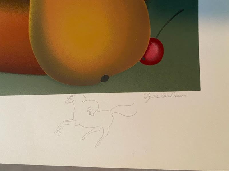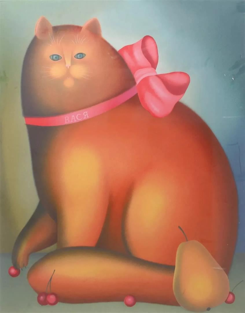 A hand signed serigraph with remarque by Igor Galinin. A fat cat on paper, Image 35" x 27", edition of 100, unframed w/ COA