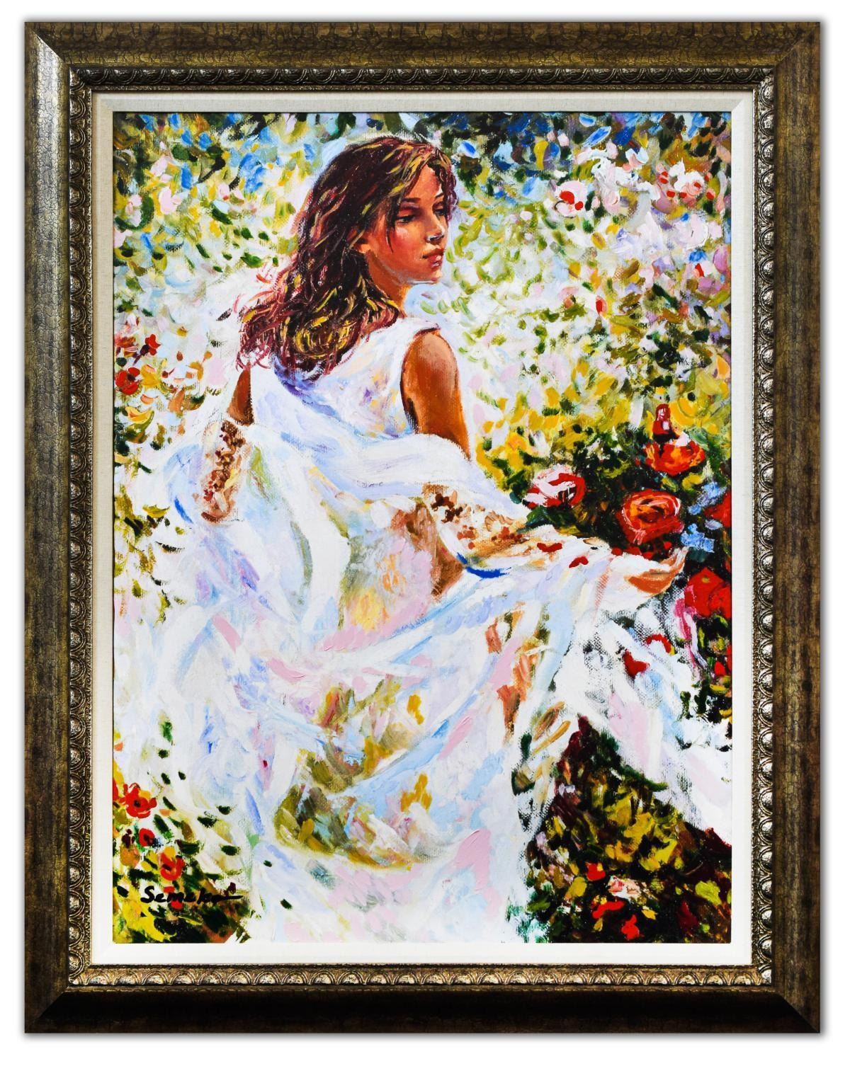 Artist: Igor Semeko. Medium: Hand Embellished Giclee on Canvas. Title: Lady in White Dress. Size (Unframed): 40" x 30". Size (Framed): 45" x 35". Certificate of Authenticity: From the publisher. Reference# 13538.