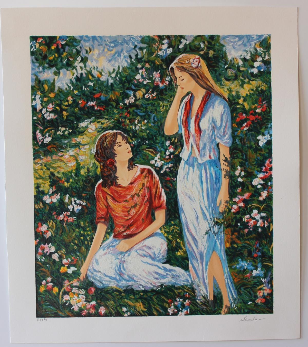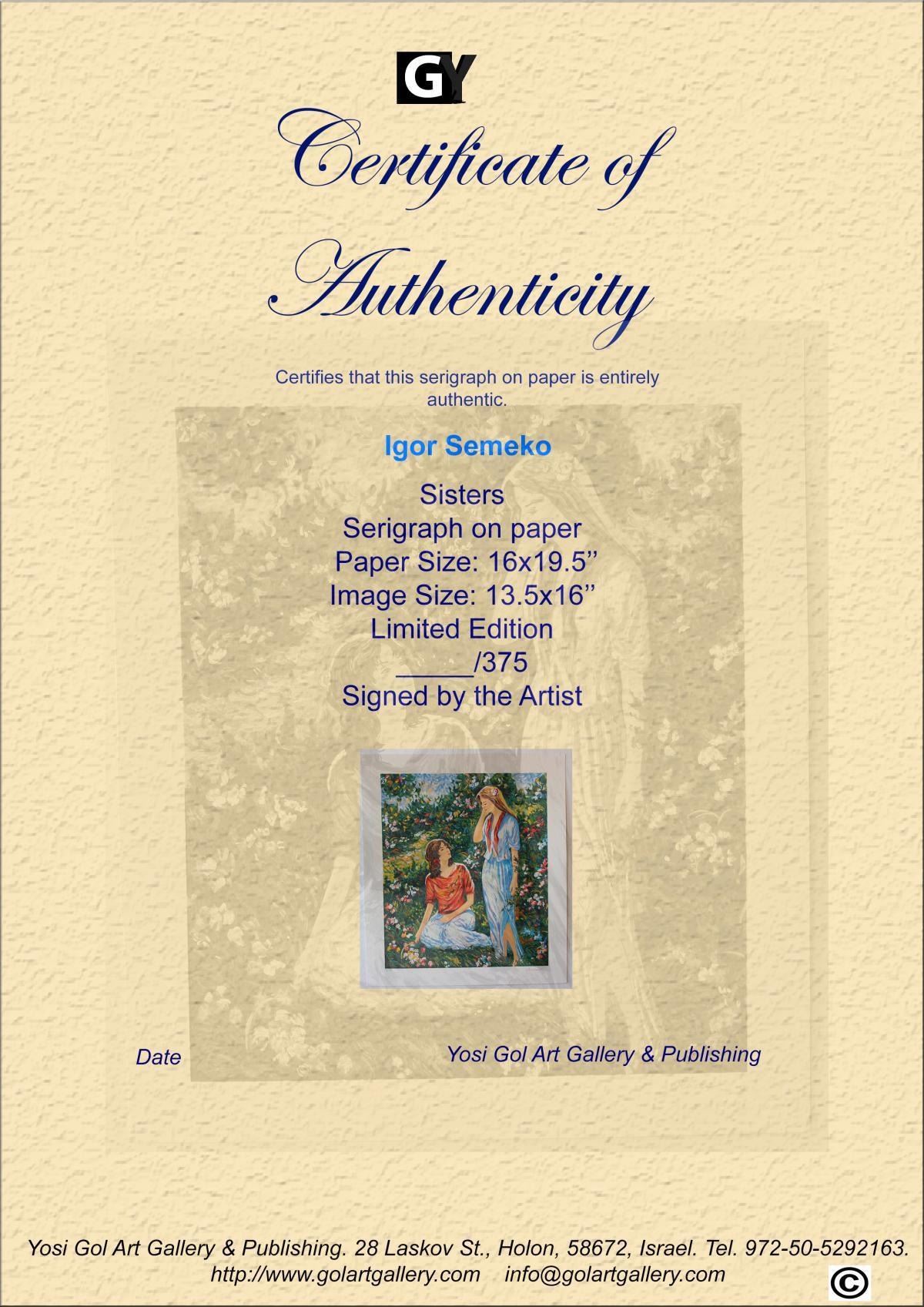 Artist: Igor Semeko. Medium: Original Serigraph on Paper. Title: Sisters. Size (Unframed): 19.5" x 16". Limited Edition: Edition of 375. Certificate of Authenticity: From the publisher.