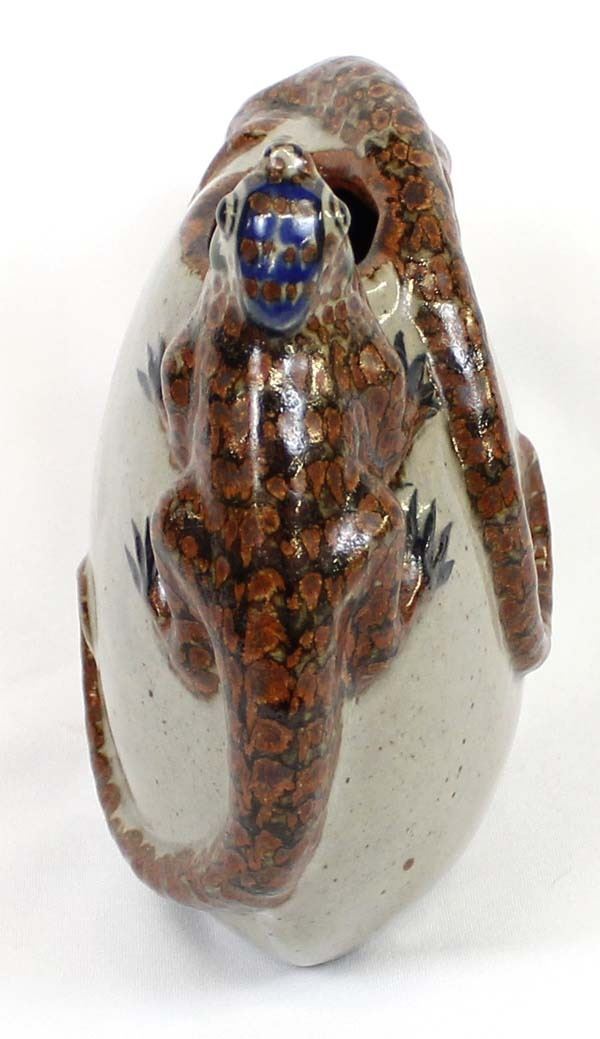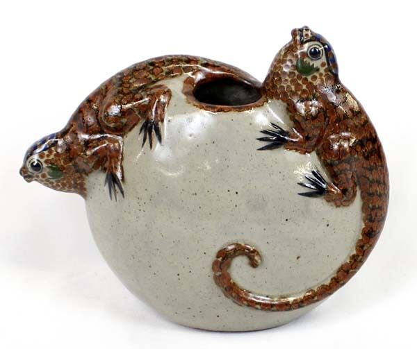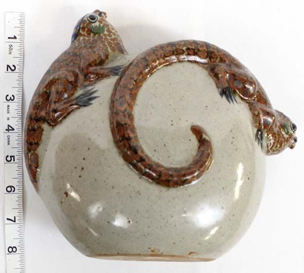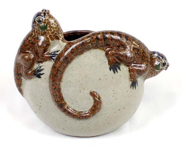 Iguana Lizards Pottery Vase. This unique piece measures 9'' x 9 1/2''