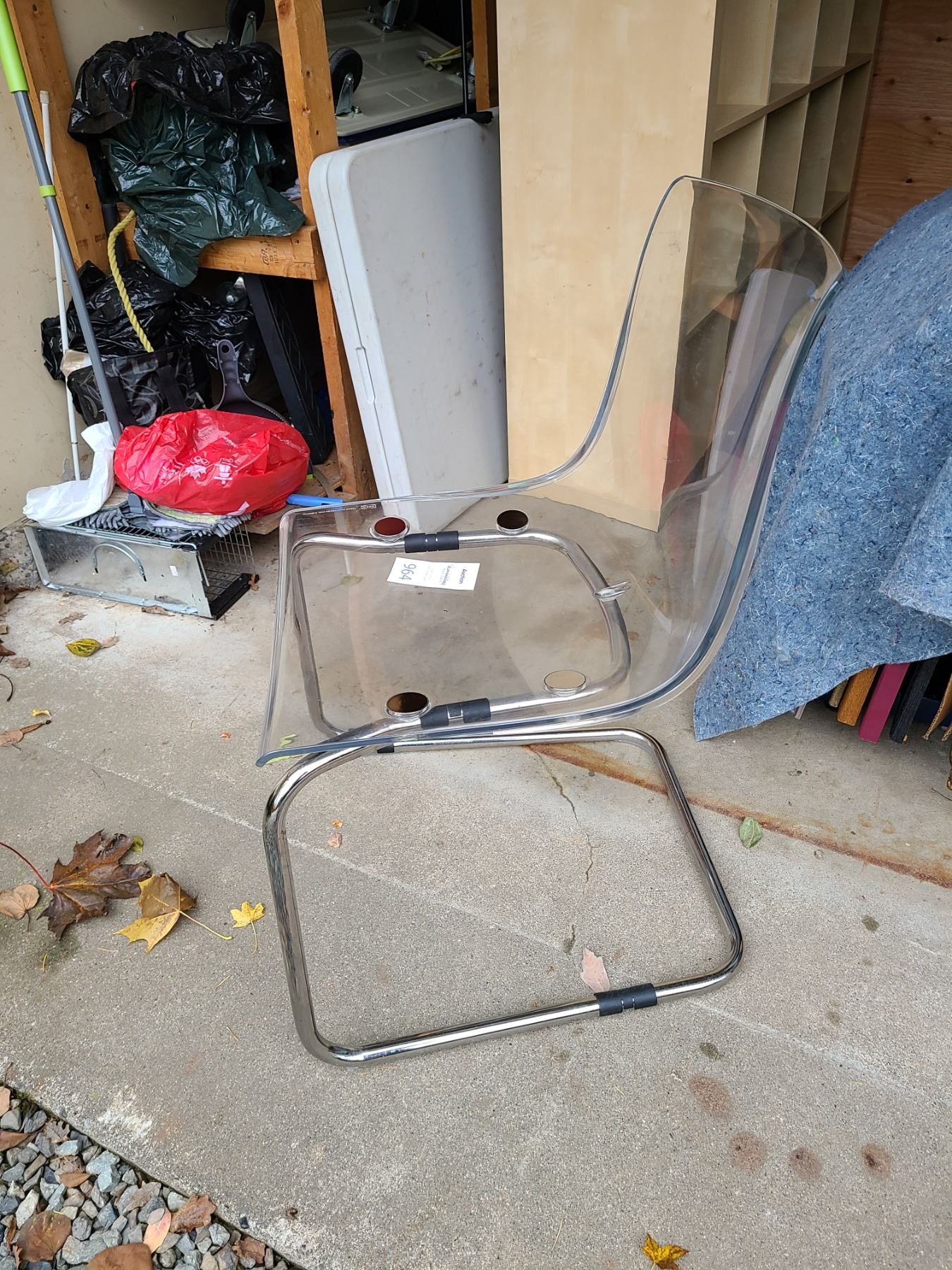 Ikea acrylic office chair 19X16X33. Pickup at 11:00 am