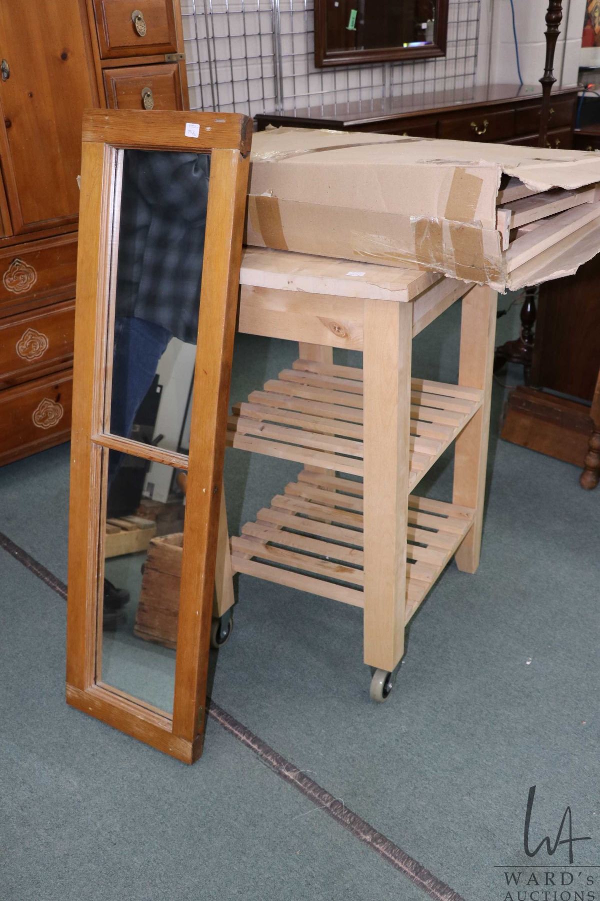 Ikea kitchen cart on wheels 33" high x 19" x 24" plus an unopened Ikea Svala children's furniture set, and a vintage wall mirror