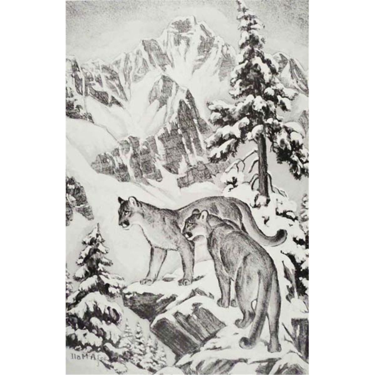 Ila McAfee (1897 -1995), Lithograph, Mountain Lions, 13 1/2" x 9", Signed Lower Left, Estimate: $100- $200 (0011)