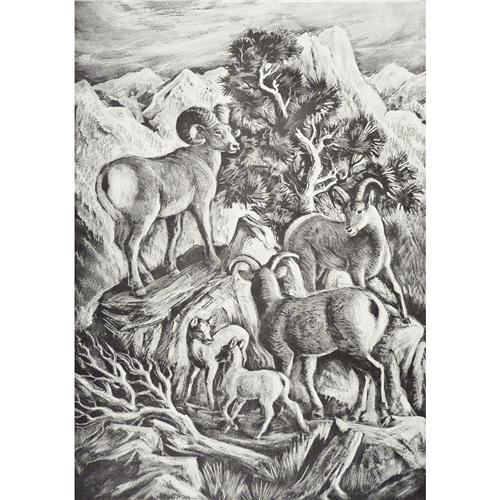 Ila McAfee (1897 -1995), Litho, Big Horn Sheep, 13 1/2" x 9".
