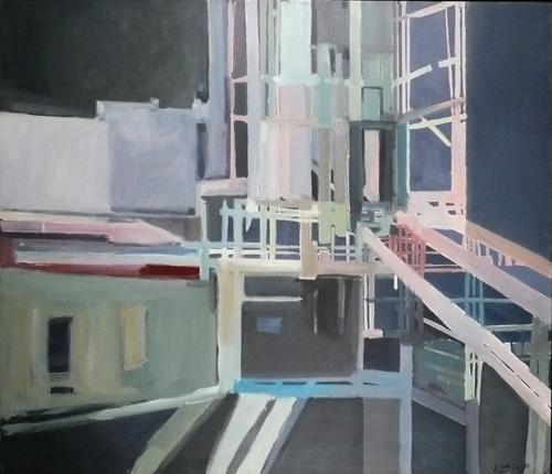 Illegible, Oil on Canvas Geometric Signed lower right 38" x 46"