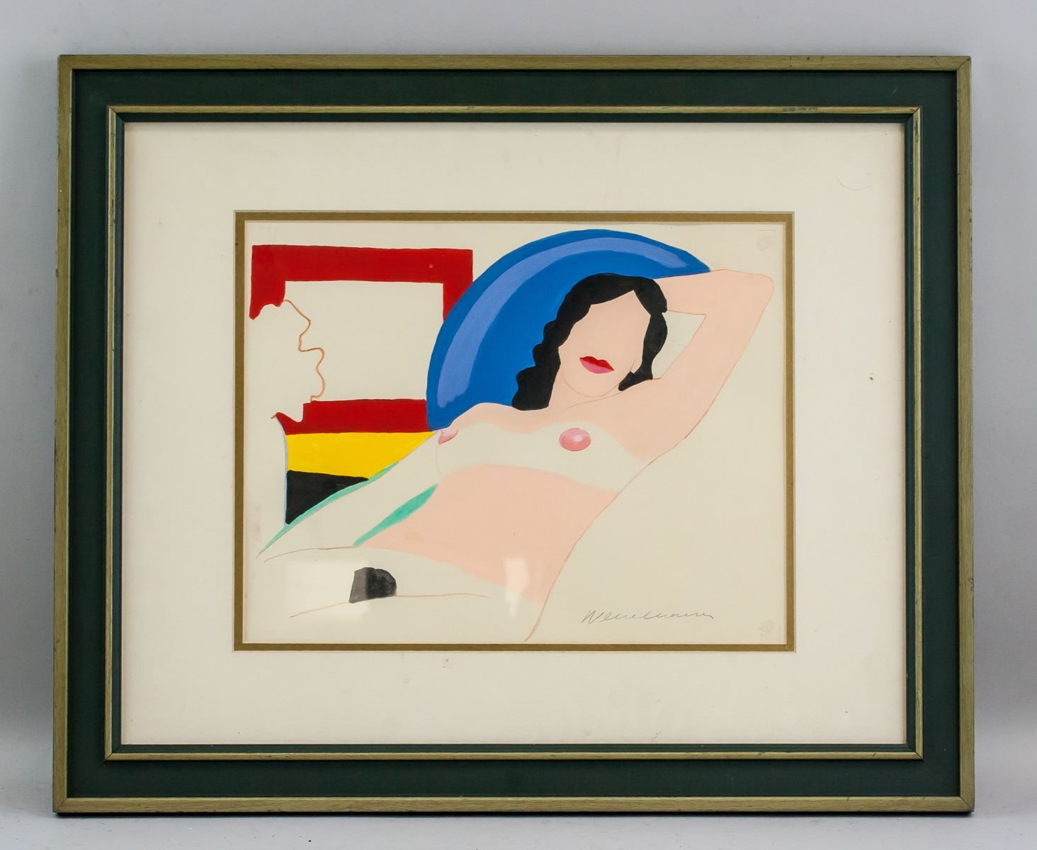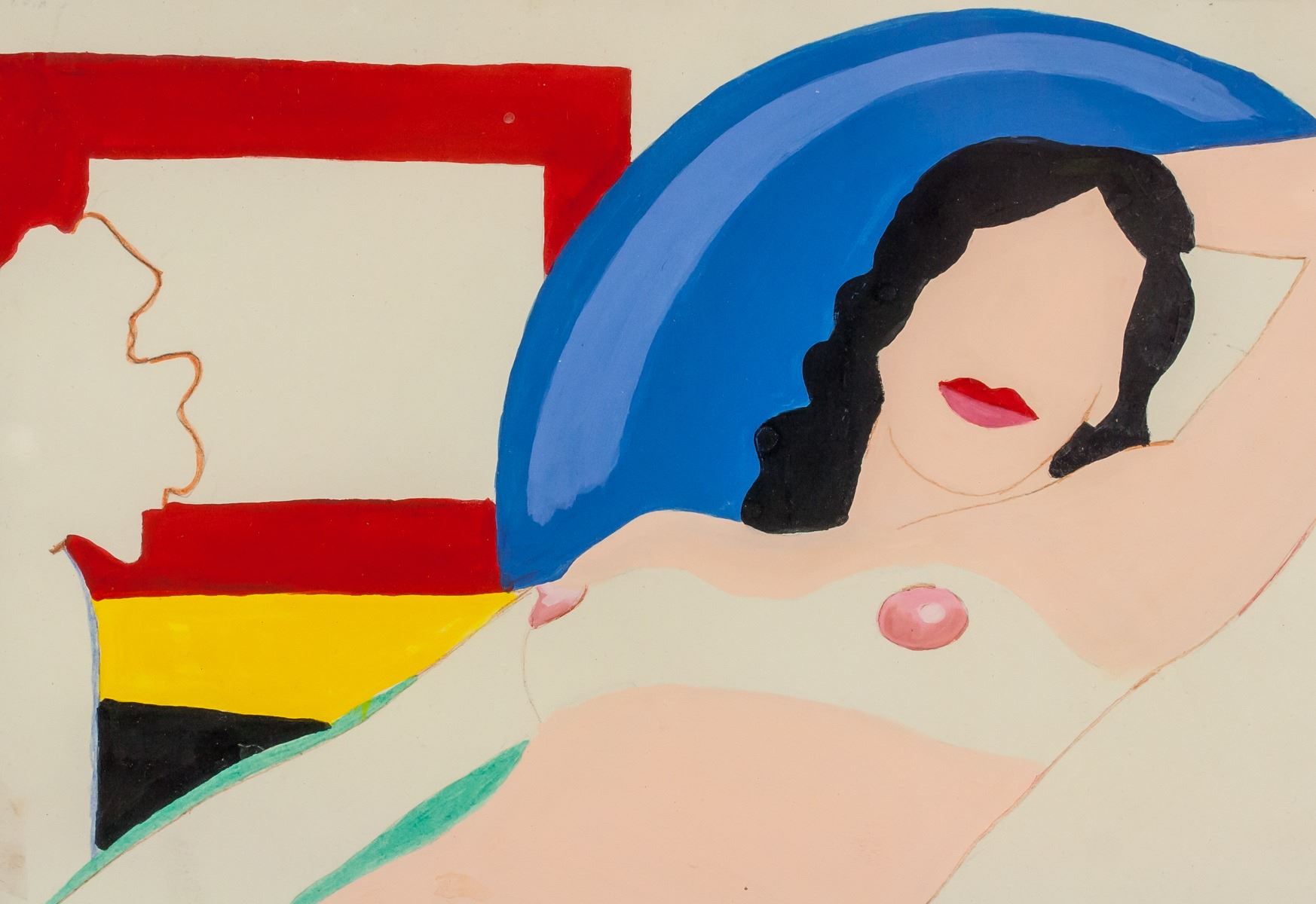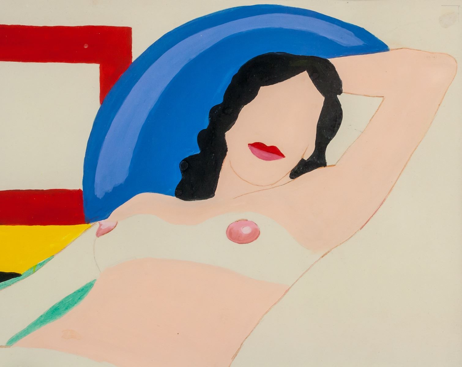 Acrylic on board, framed. Featuring a nude portrait. Signed Illegibly on the lower right corner. Label affixed to verso inscribed TOM WESSELMANN / "Painting for Amy" / 1993 / "13.25 x 10.50." GALERIE ARONOWITSCH / STUREGATAN 24 114 36 STOCKHOLM TEL. 663 80 89. On verso also inscribed CLaire Wesselmann, EXECUTOR / THE ESTATE OF TOM WESSELMANN / D93228 - Tom Wesselmann "PAINTING FOR AMY" 1993 / LIQUITEX ON BRISTOL BOARD, 13 1/4 x 10 1/2 INCHES. Stamped TOM WESSELMAN 1257 - 58th ST. BROOKLYN 19, N. Y. on verso. 26 x 34 cm (10.5 x 13.25 in). Frame: 48 x 58.5 cm (19 x 23 in). PROVENANCE: Private American collection