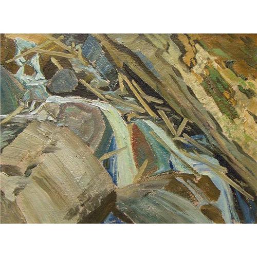 Canadian ASA, RCA [1905-1989] WATERFALL oil on board 12 x 16 in. (30.5 x 40.6 cm) monogrammed verso