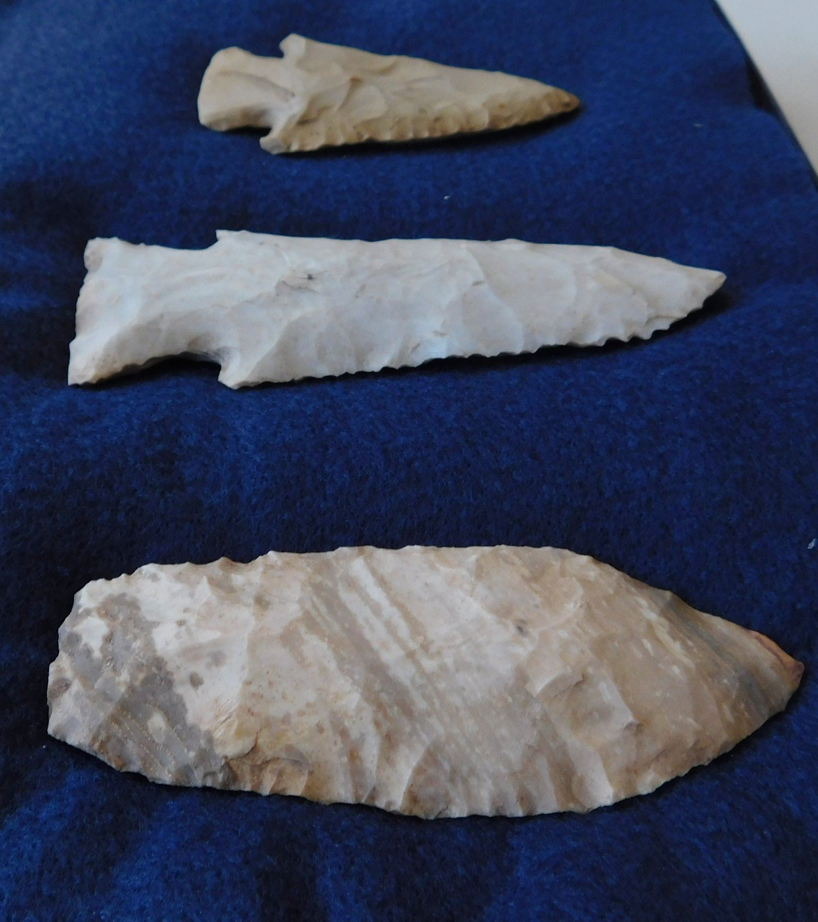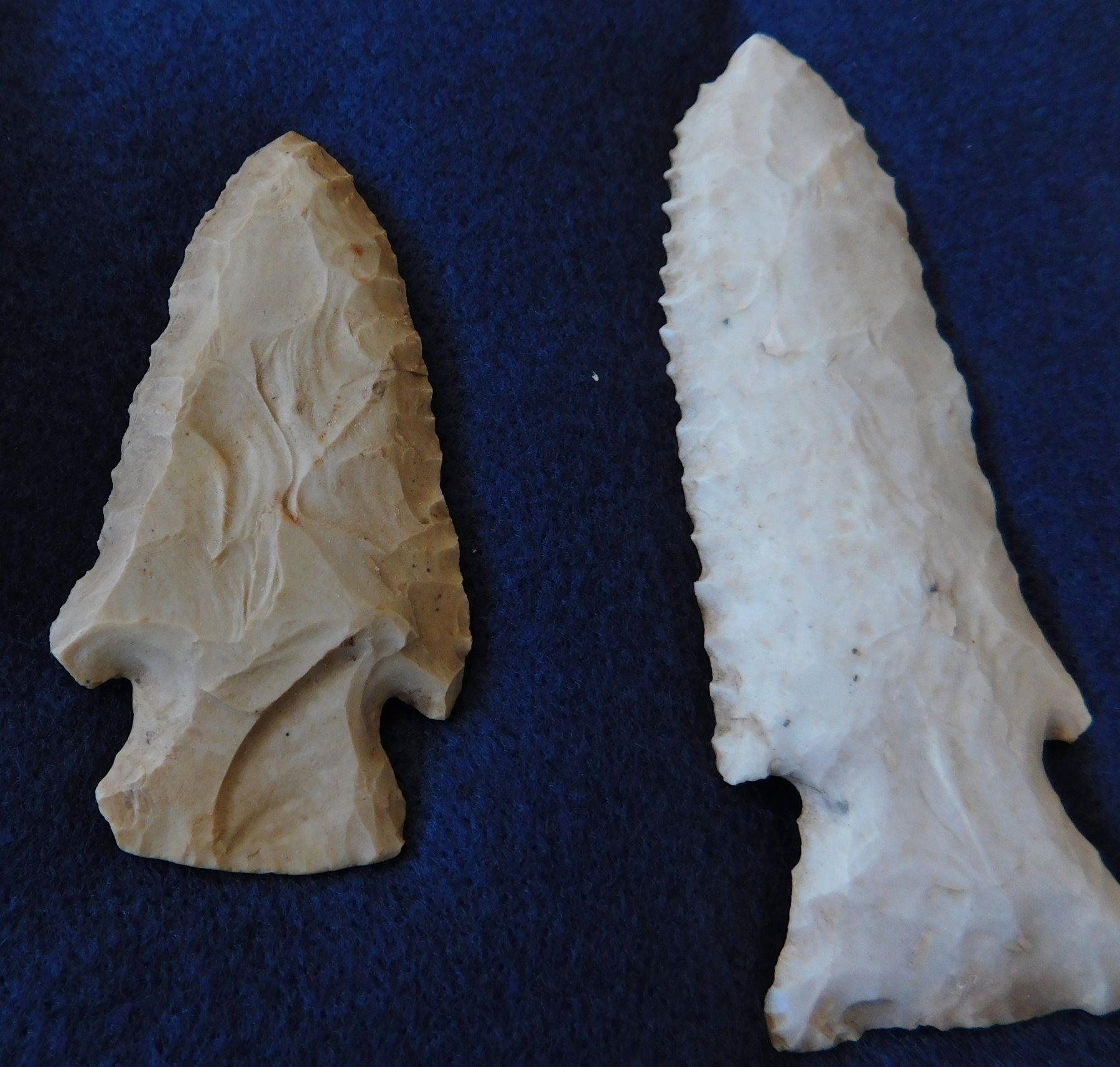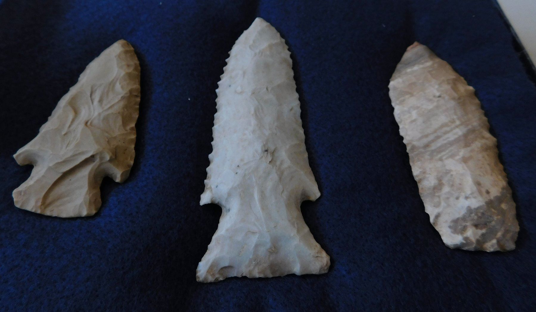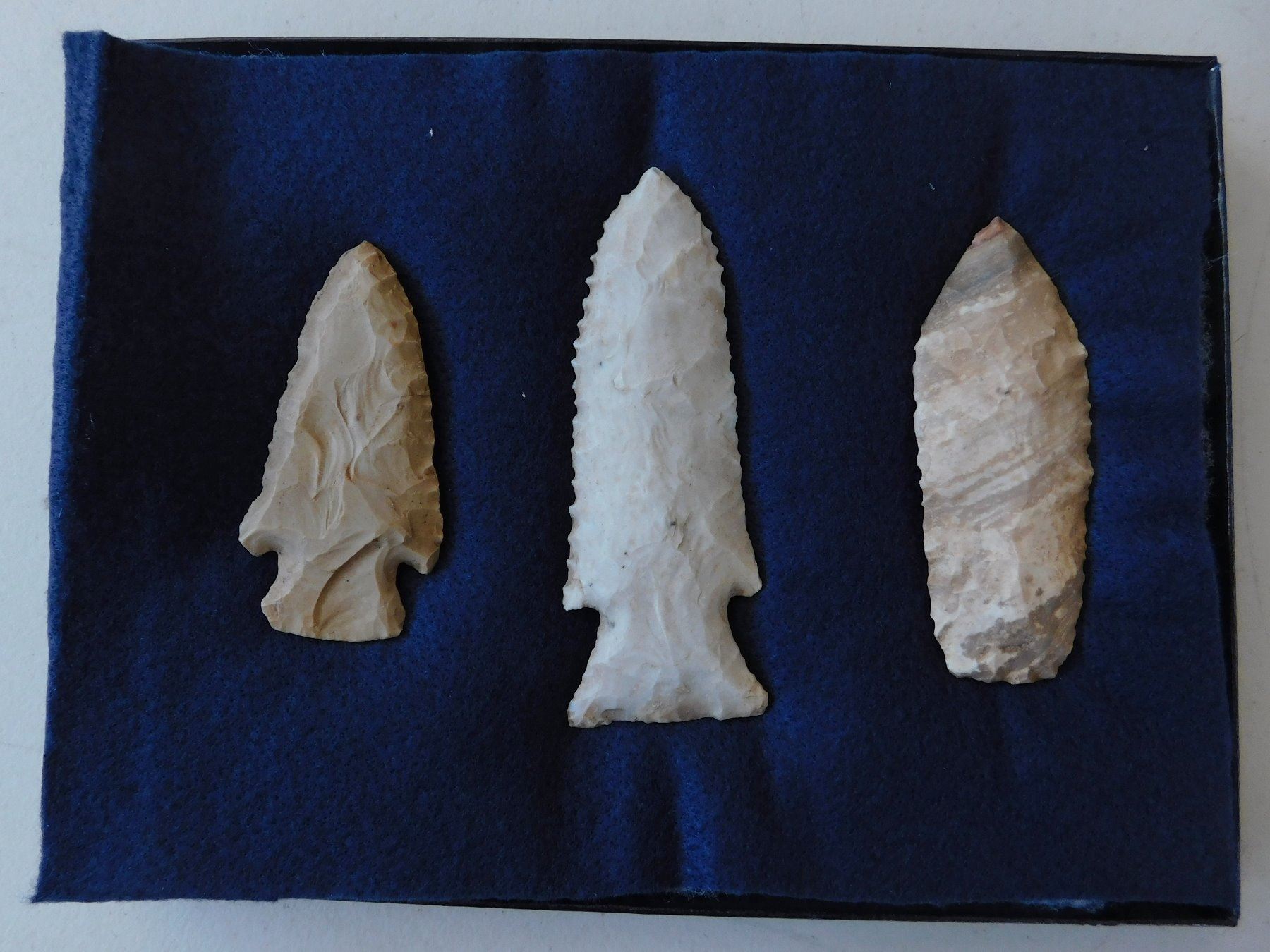 Illinois Flint Collection, archaic period. Made of flint and chert, the items measure from 2 7/8" to 3 15/16". Found near Quincy, Illinois. Frame not included. Condition: As found, see images. Shipping: $23.50 w/insurance and signature.