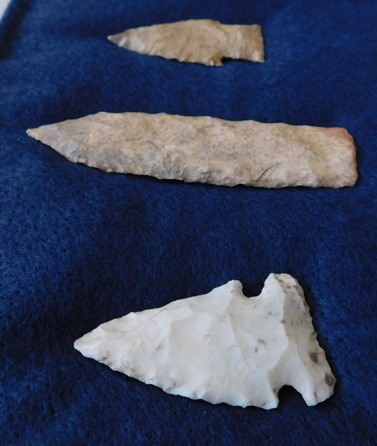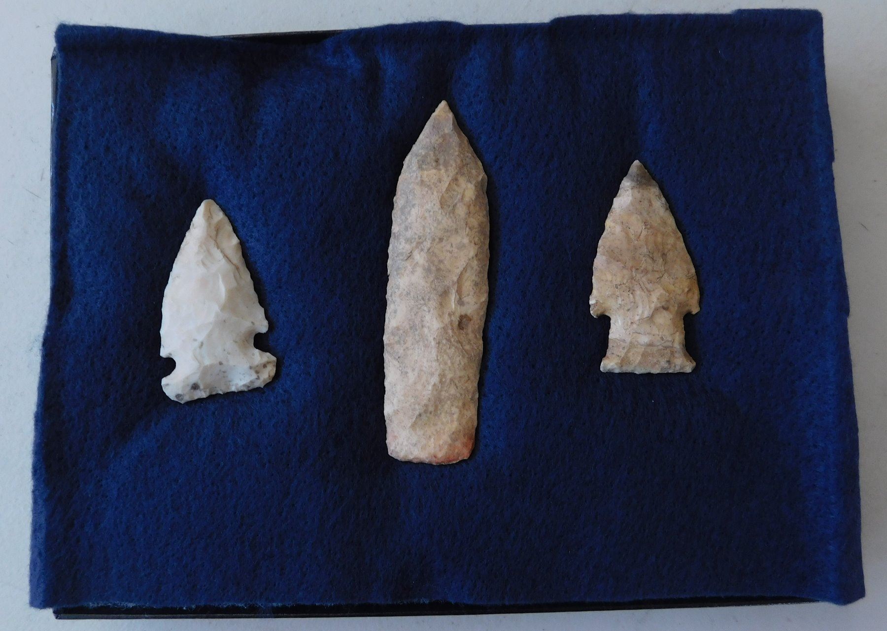 Illinois Flint Collection, archaic period. Items made of chert, the longest item measures 4". Quincy, Illinois. Frame not included. Condition: As found, see images. Shipping: $25.50 w/insurance and signature.