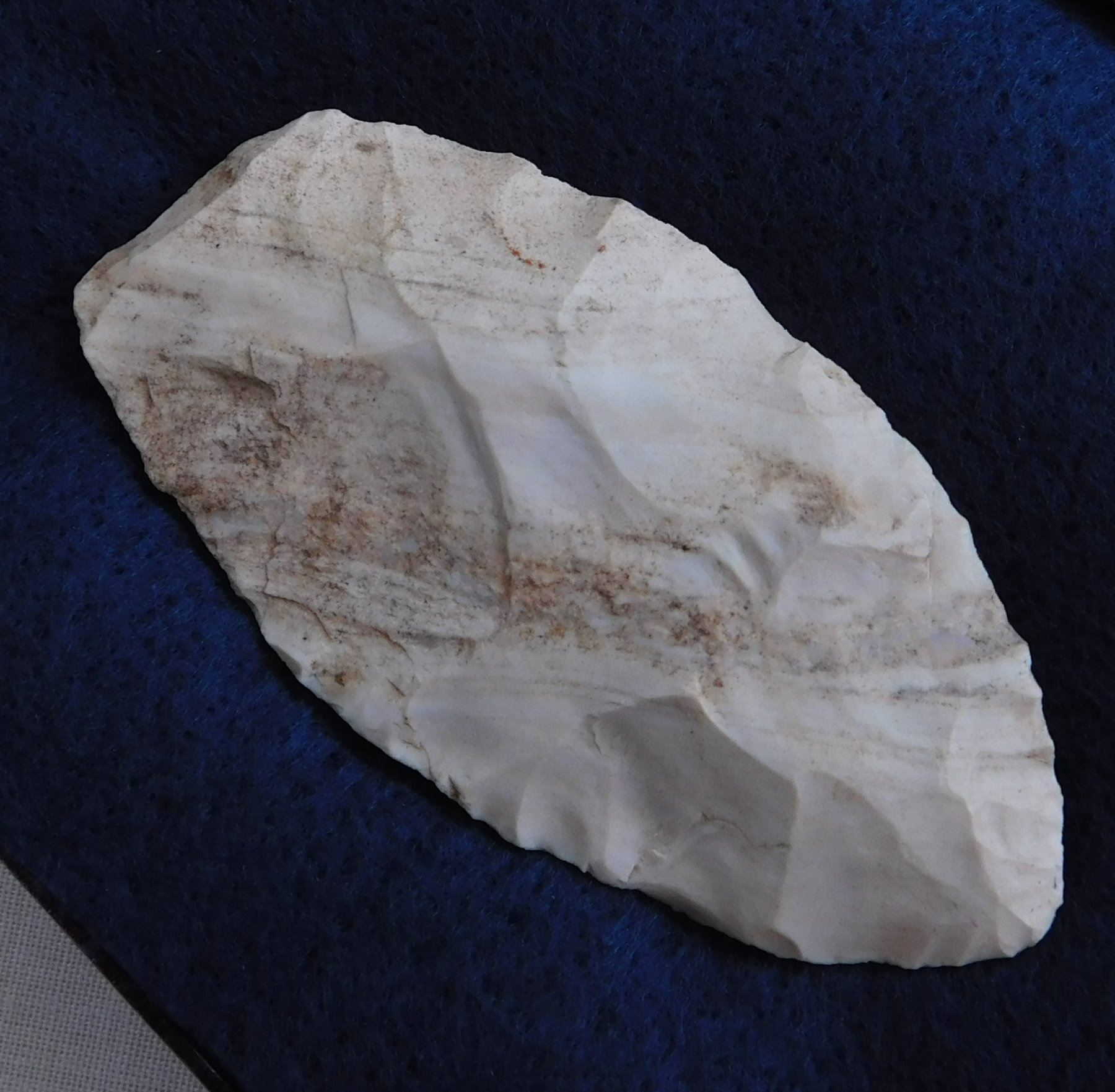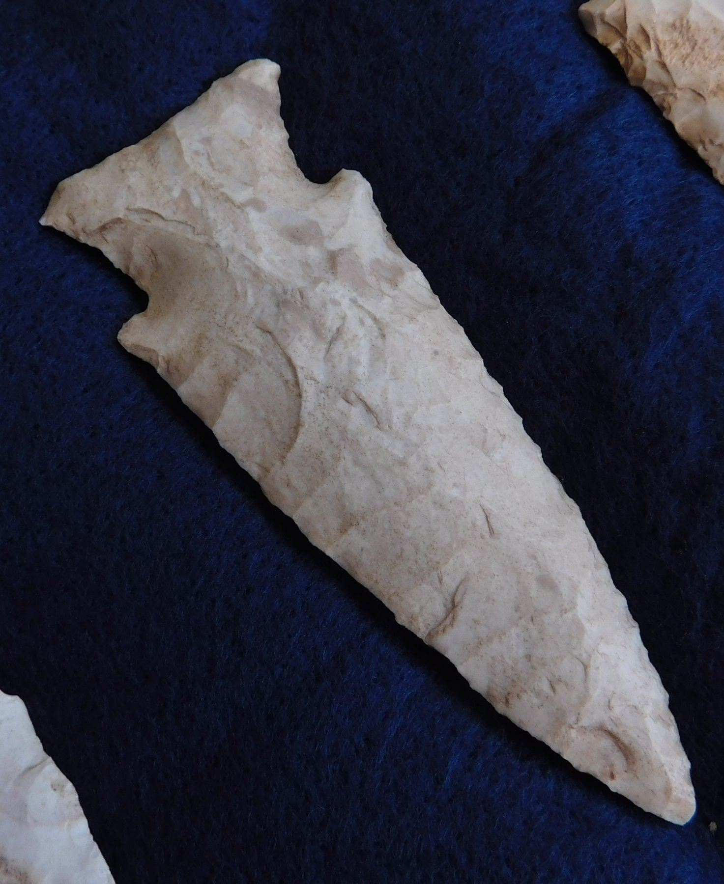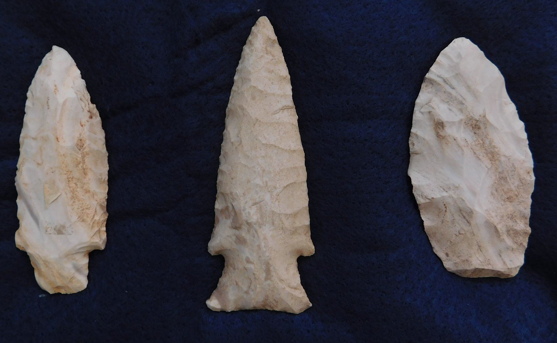 Illinois Flint Collection, pre-historic items. Made of chert, the items measure from 3" to 3.5" long. Adams County, Illinois. Frame not included. Condition: As found, see images. Shipping: $18.00 w/insurance and signature.