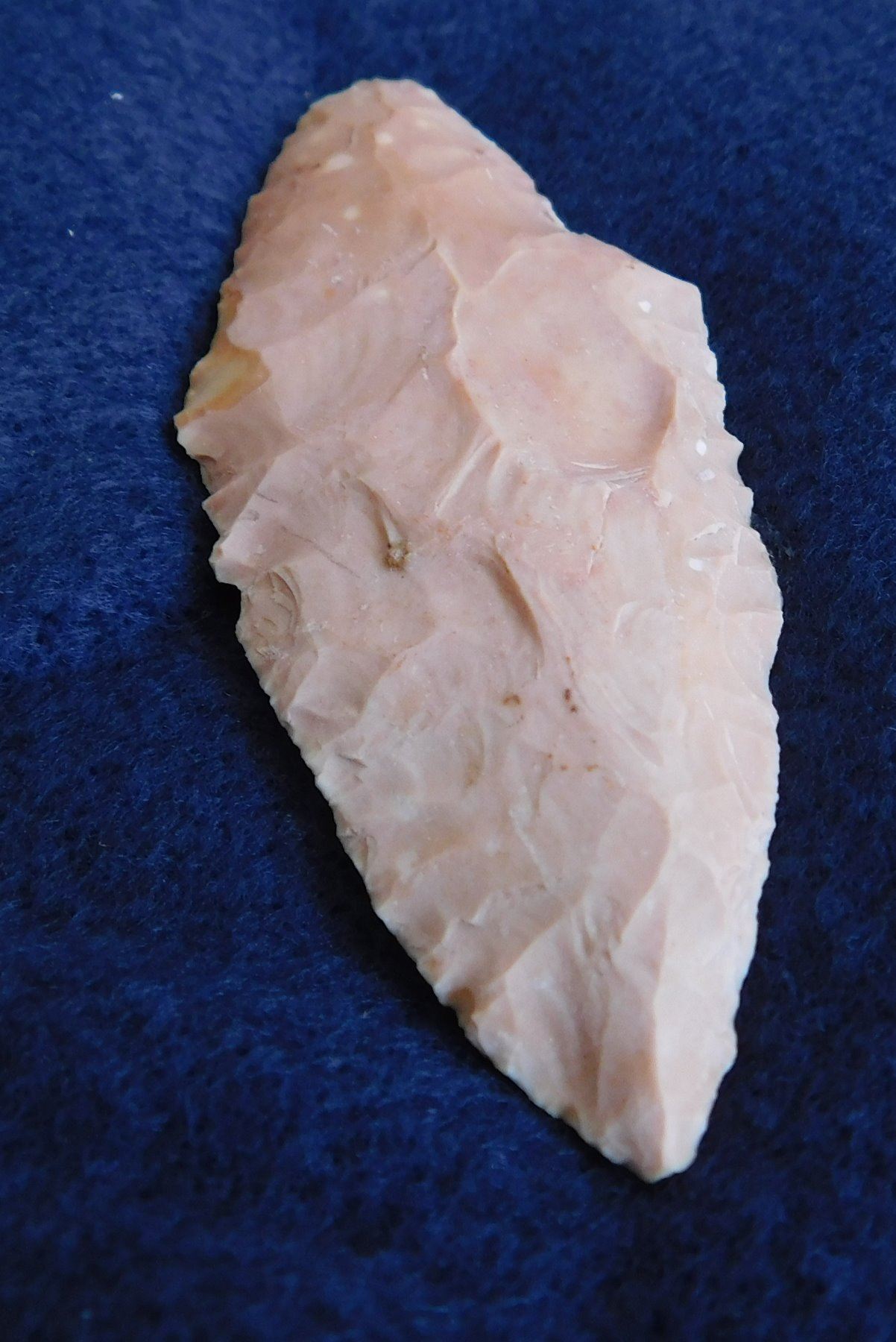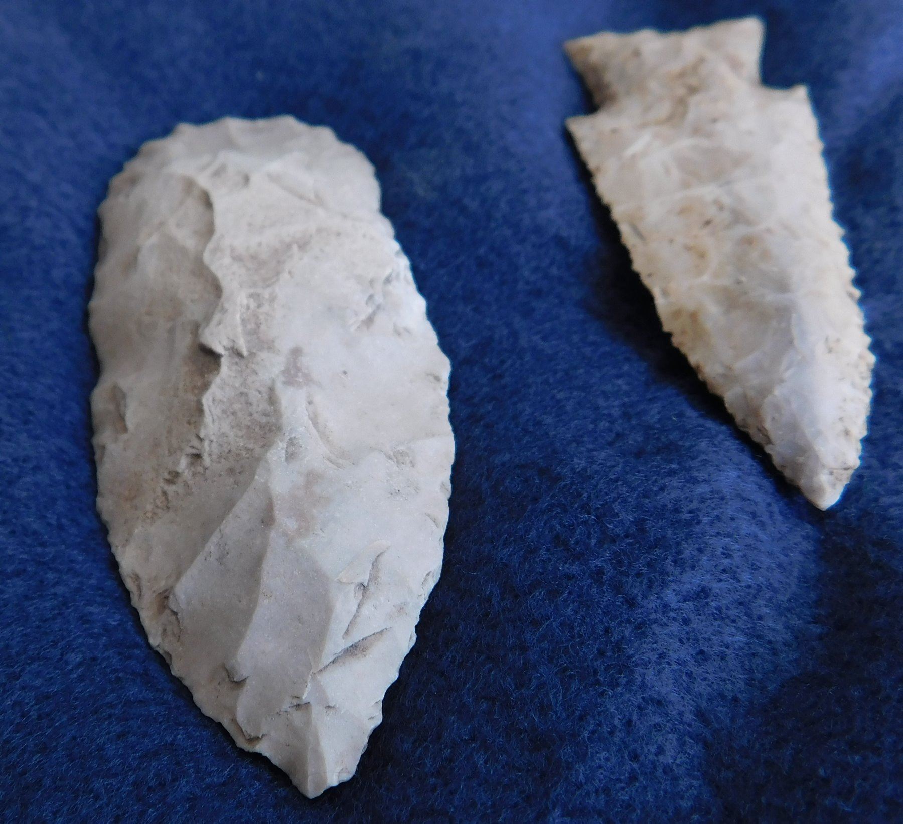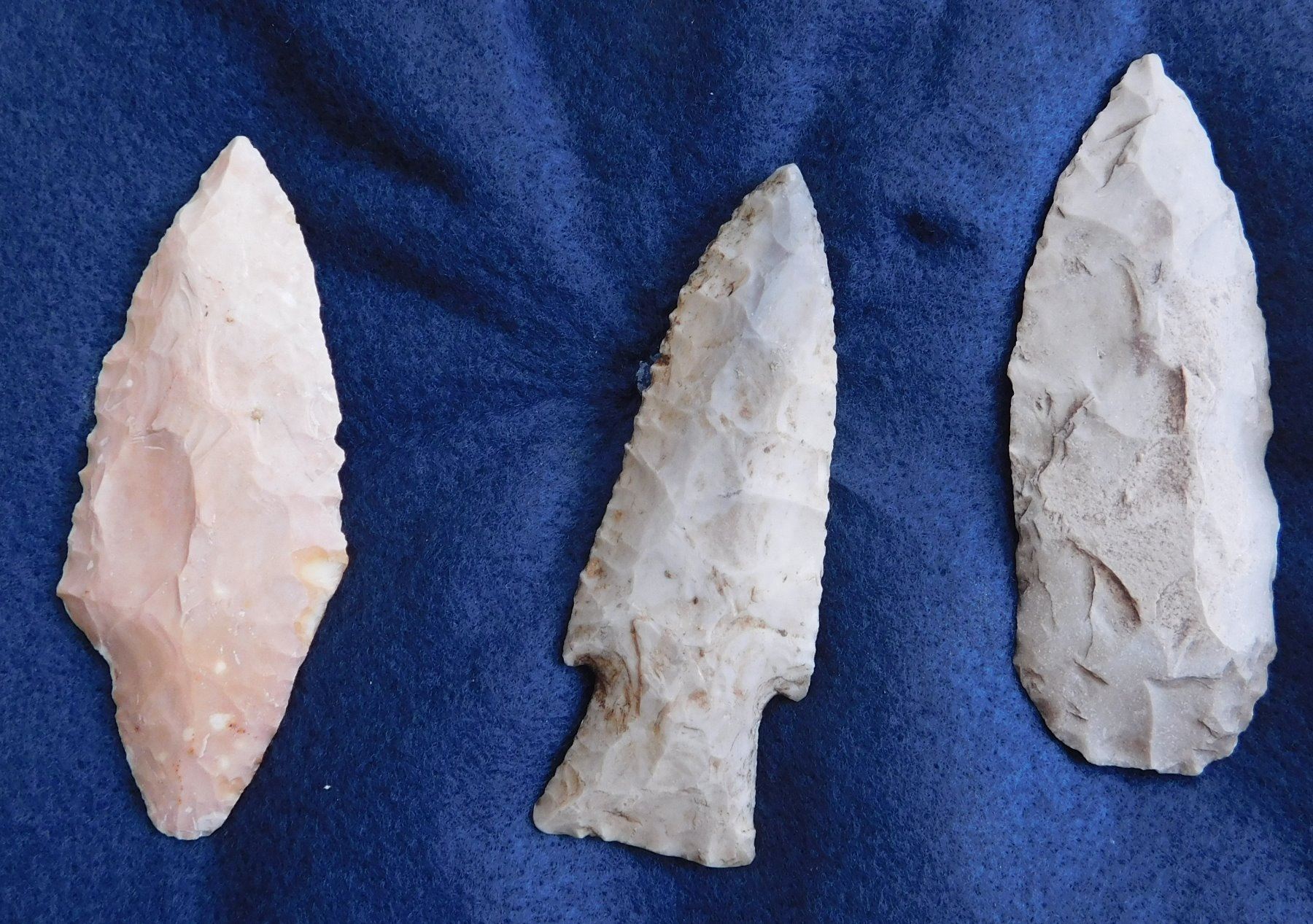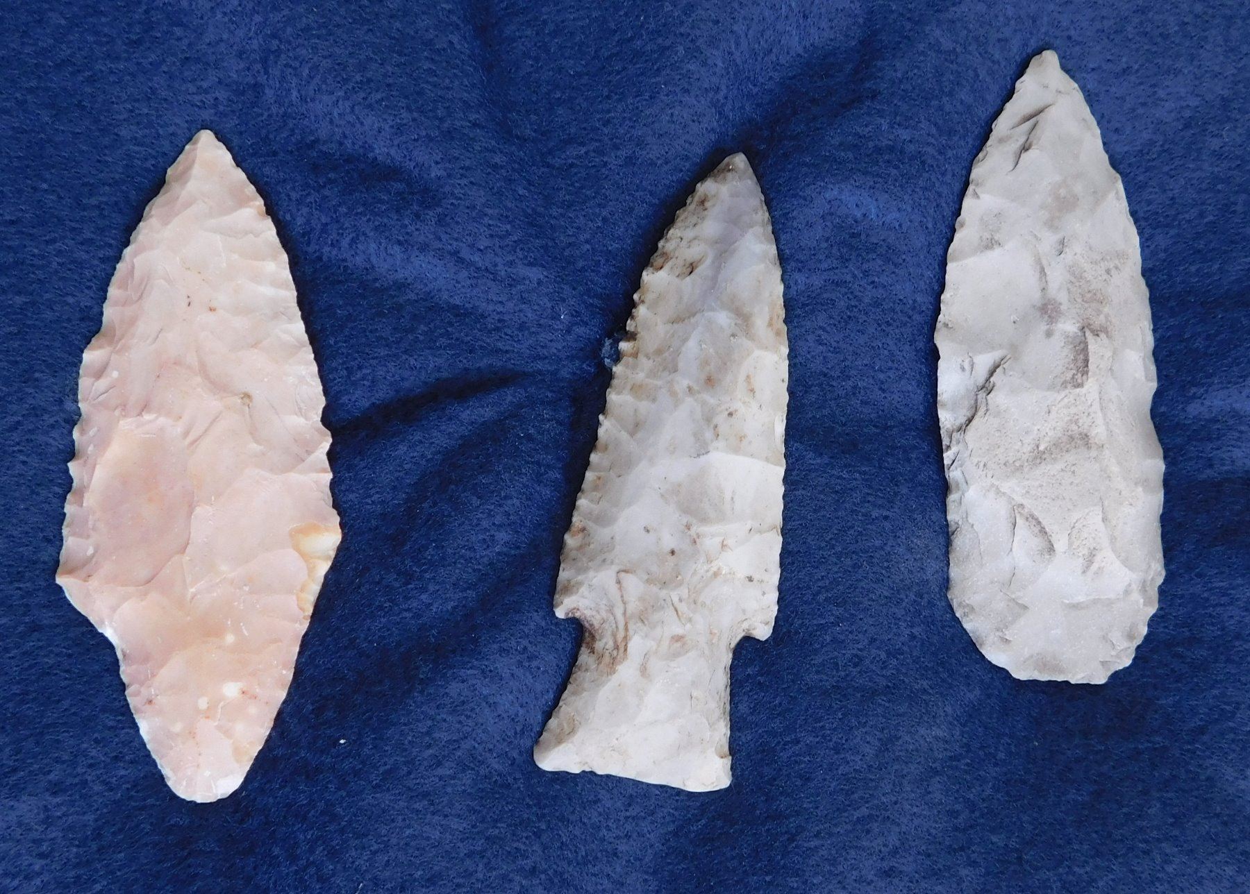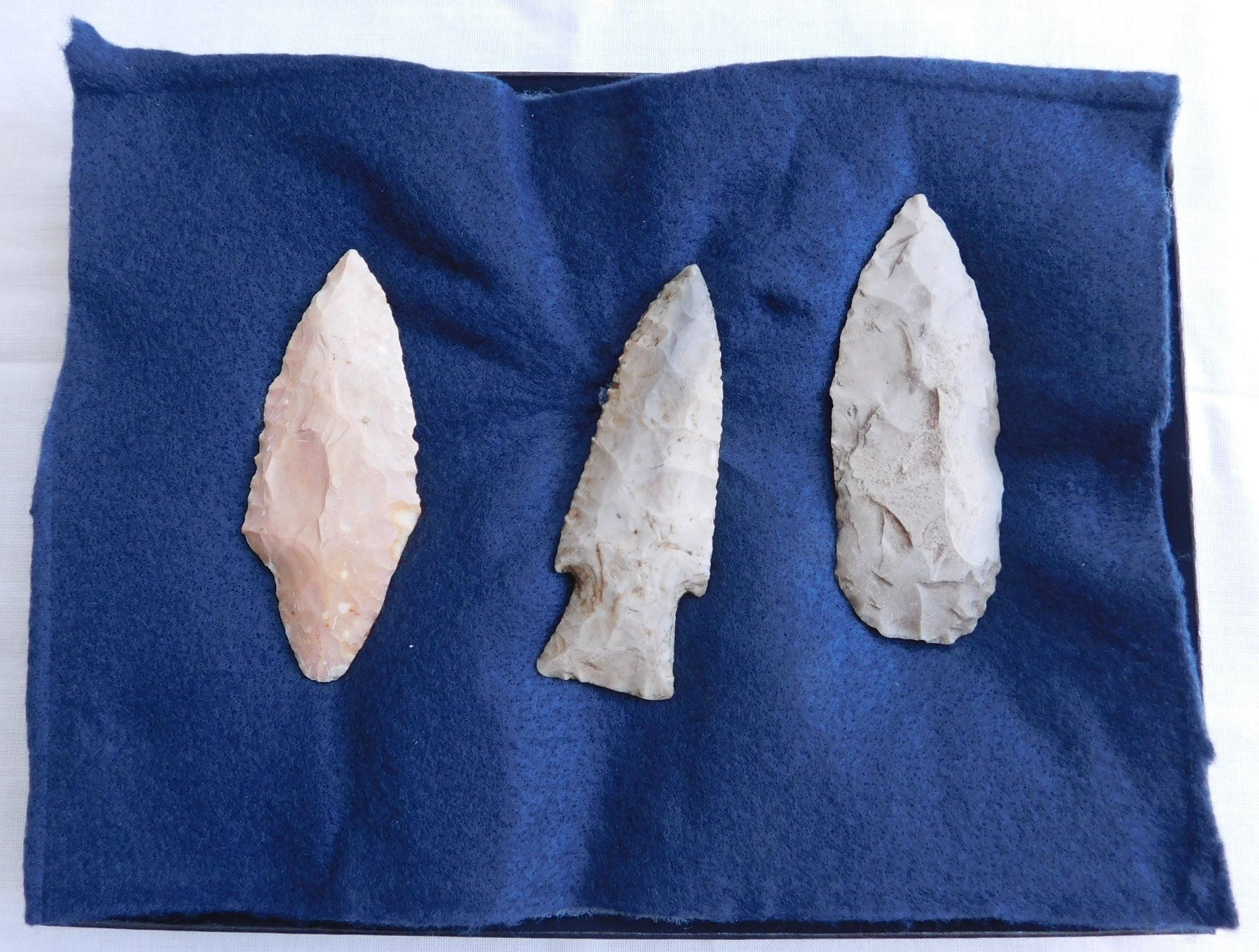 Illinois Flint Collection, pre-historic items. Made of chert, the items measure from 3" to 3.25" long. Adams County, Illinois. Frame not included. Condition: As found, see images. Shipping: $20.00 w/insurance and signature.