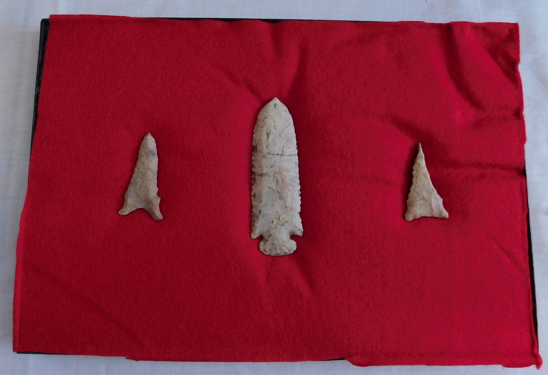 Illinois Flint Collection, pre-historic items. Made of chert, the items measure from 2" to 4" long. Adams County, Illinois. Frame not included. Condition: As found, see images. Shipping: $18.50 w/insurance and signature.