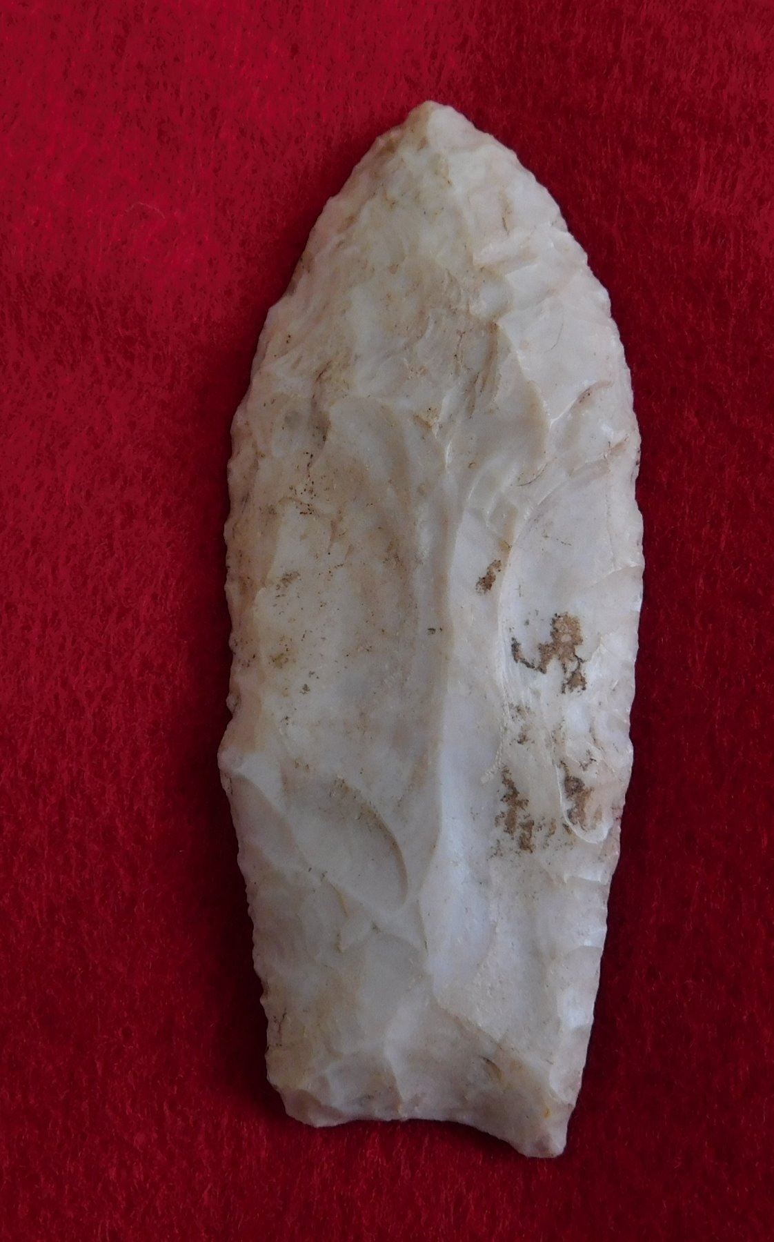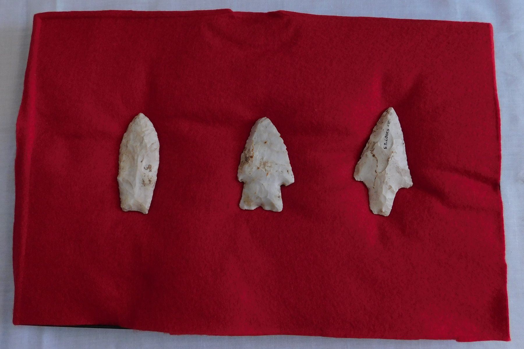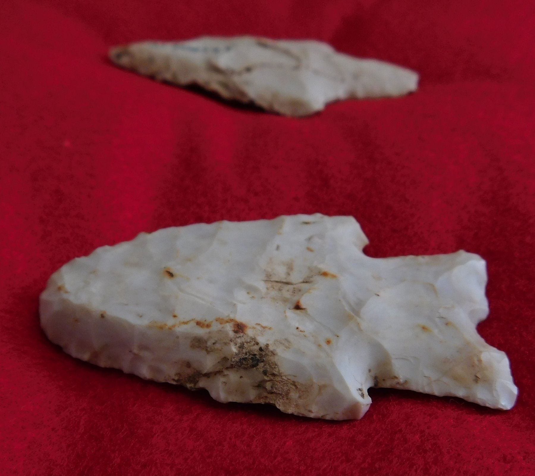 Illinois Flint Collection, pre-historic items. Made of chert, the items measure from 2.5" to 2.75" long. Adams County, Illinois. Frame not included. Condition: As found, see images. Shipping: $18.00 w/insurance and signature.