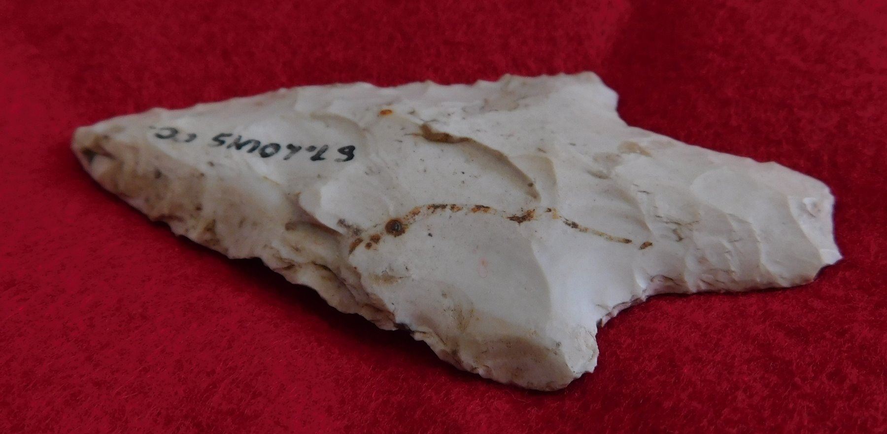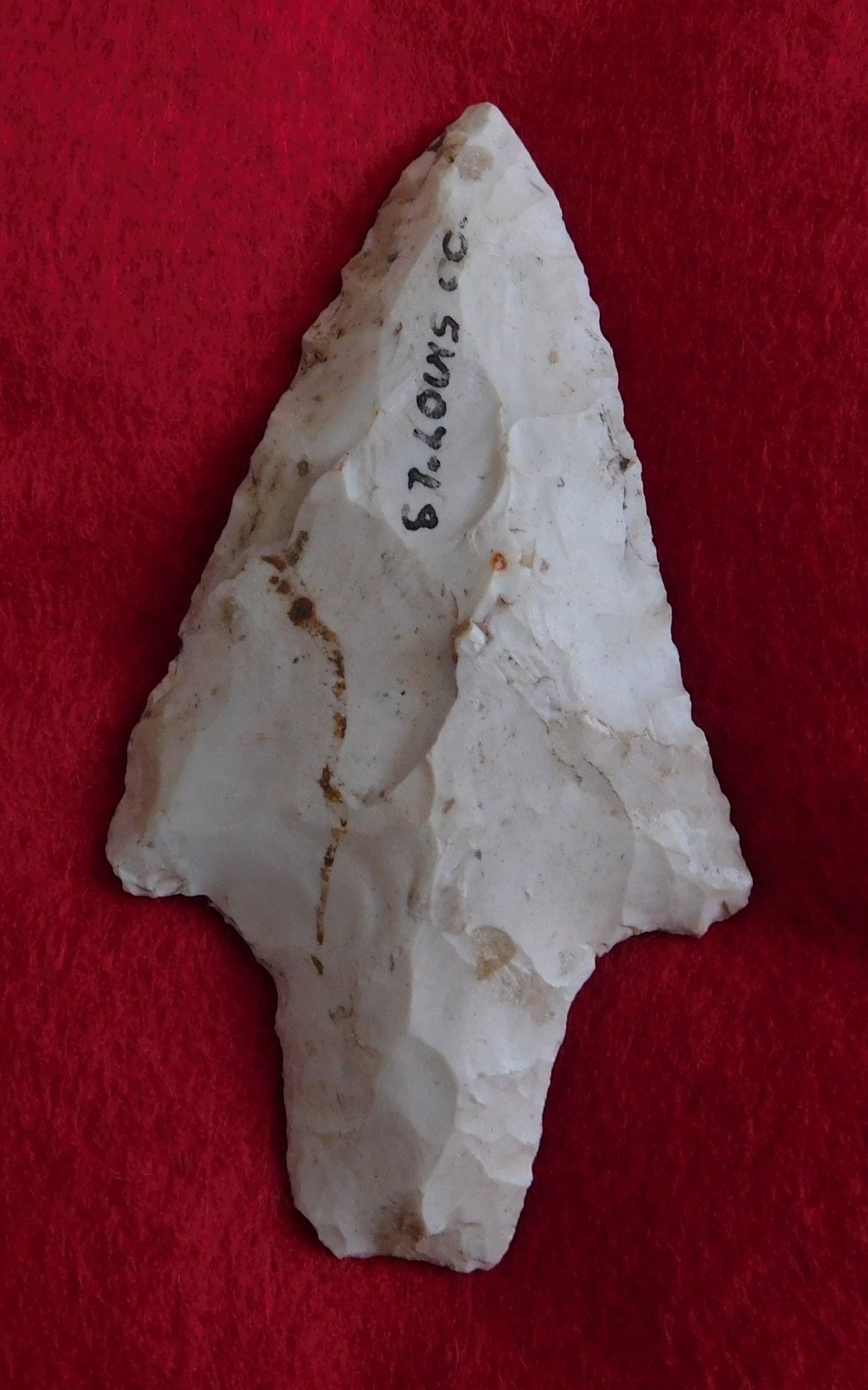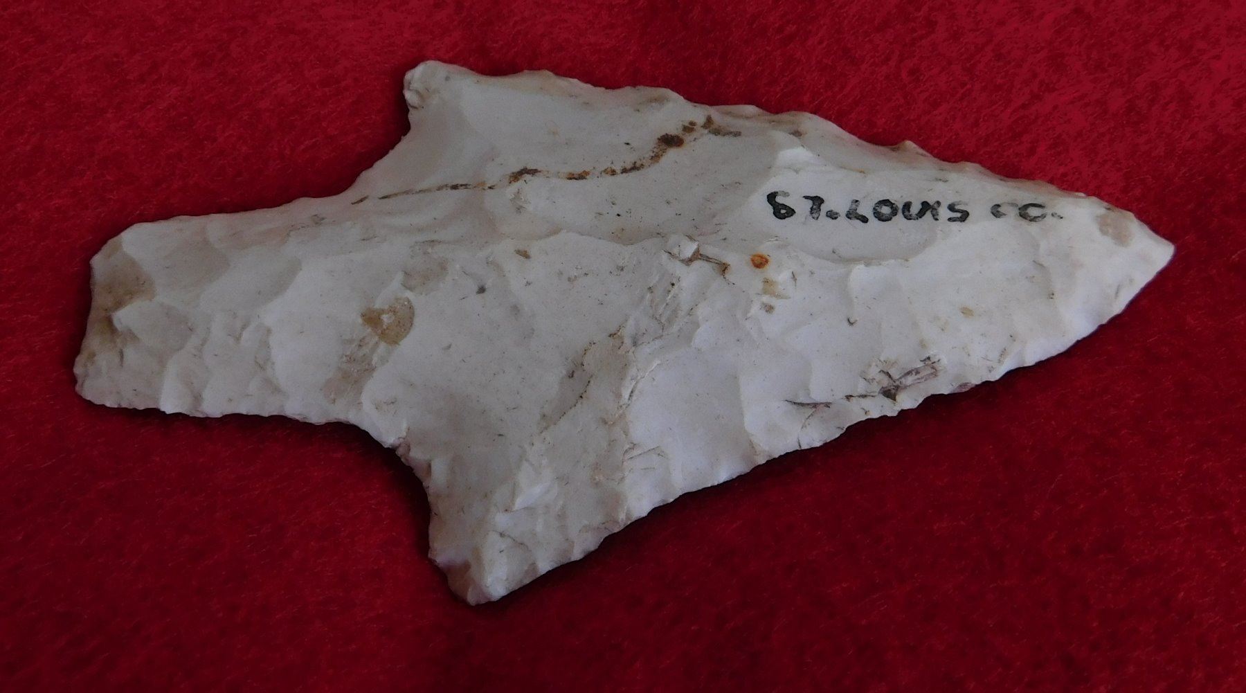 Illinois Flint Collection, pre-historic items. Made of chert, the items measure from 2.5" to 2.75" long. Adams County, Illinois. Frame not included. Condition: As found, see images. Shipping: $18.00 w/insurance and signature.