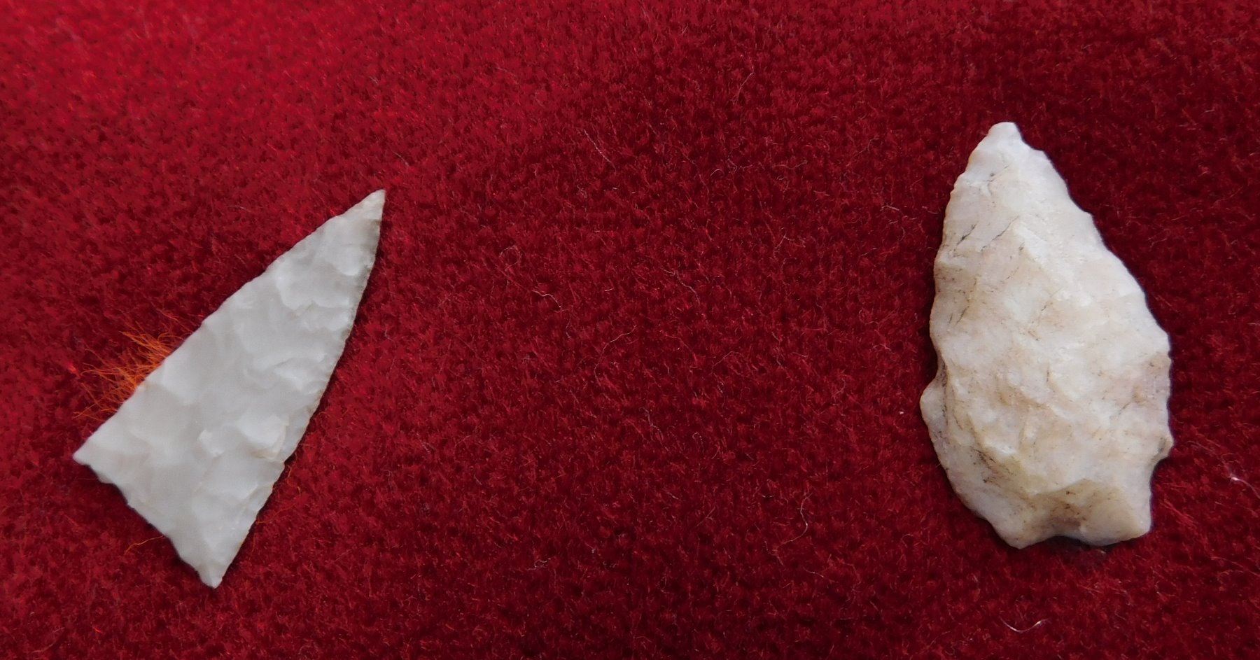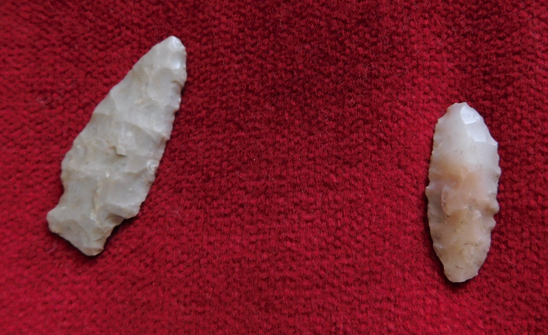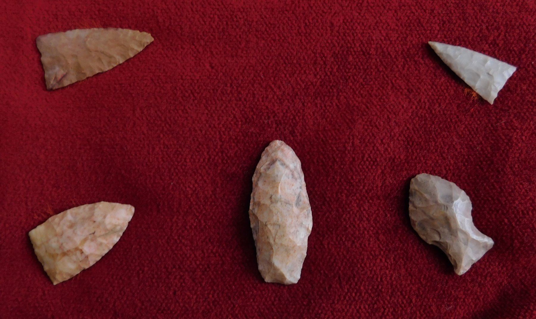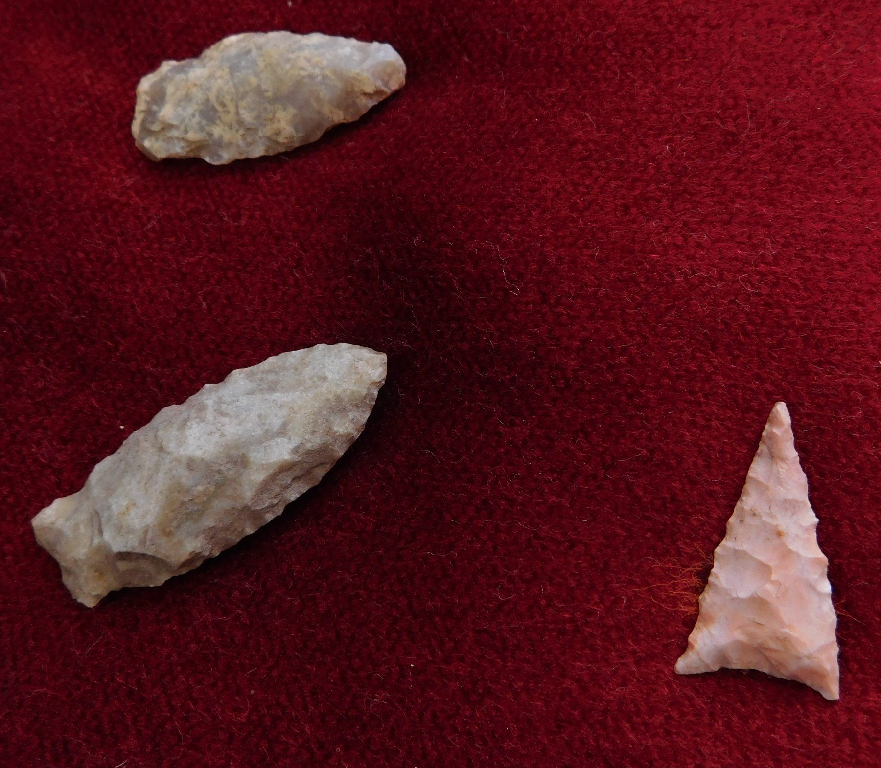 Illinois Flint Collection, pre-historic items. Made of chert, the items measure from 1" to 2" long. Adams County, Illinois. Frame not included. Condition: As found, see images. Shipping: $18.00 w/insurance and signature.