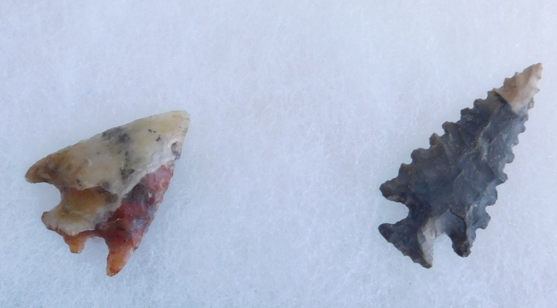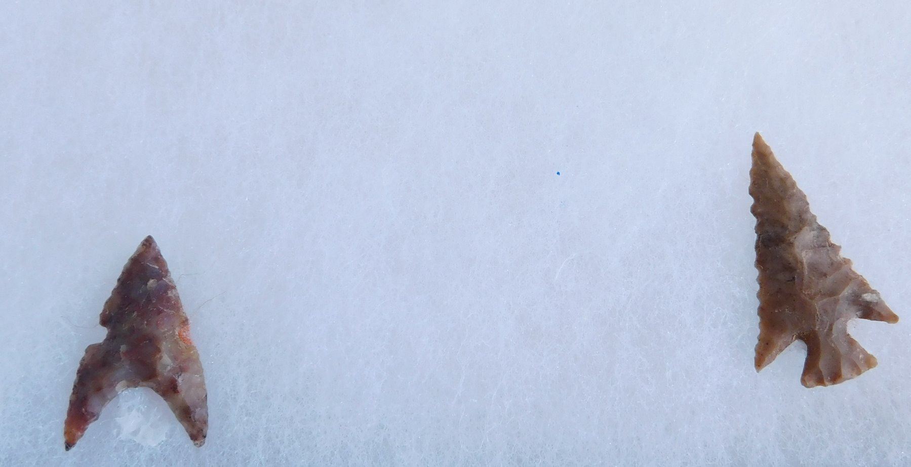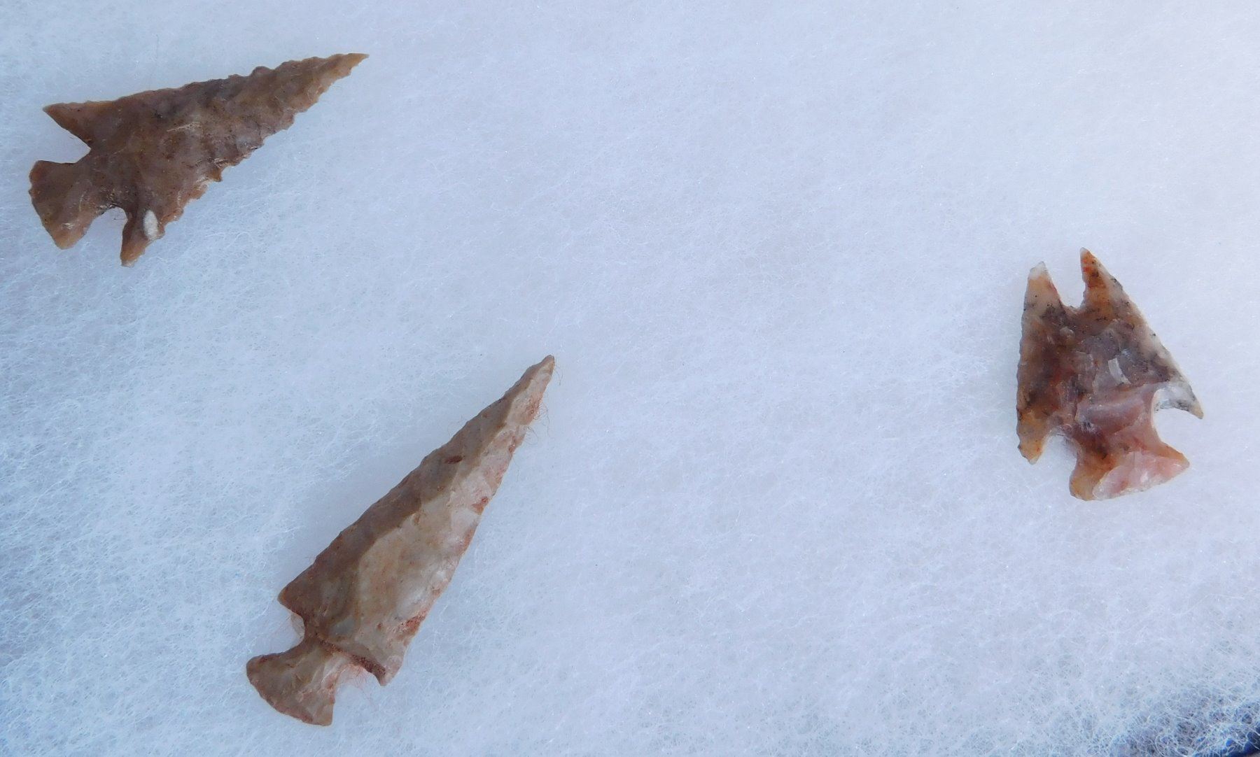 Illinois Flint Collection, pre-historic items. Made of chert, the items measure from 1" to 2.75" long. Adams County, Illinois. Frame not included. Condition: As found, see images. Shipping: $20.50 w/insurance and signature.