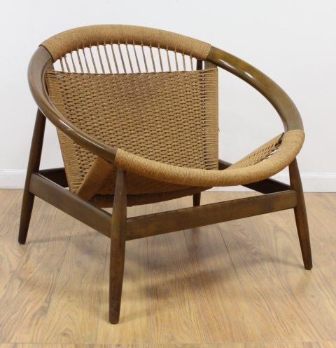 Illum Wikkelso for Niels Eilerson. Stenciled in red. Made in Denmark. Circa 1950. Model 23. Approx. 27" H x 31" W x 26" D.
