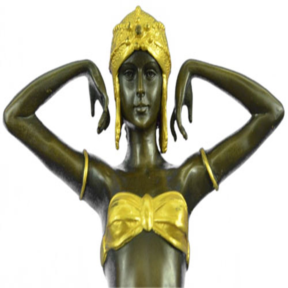 This Art Nouveau classic takes full advantage of the capabilities of the lost wax bronze casting technique to render amazing detail. The piece is cast in the finest grade of silicon bronze. From creating the mold to finish polishing, and every step in the process in between. Bronze Dimensions with Marble Base: Height 19 X Width 7 inches. Weight: 10 LBS.