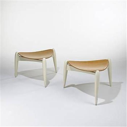 Ilmari Tapiovarra stools, pair Asko Finland, 1951 plywood, painted wood 22"w x 24"d x 16"h Handwritten to bottom of each: [Finland]. These stools were purchased at the 1964 World's Fair, New York. <BR>Provenance: Private collection, New York