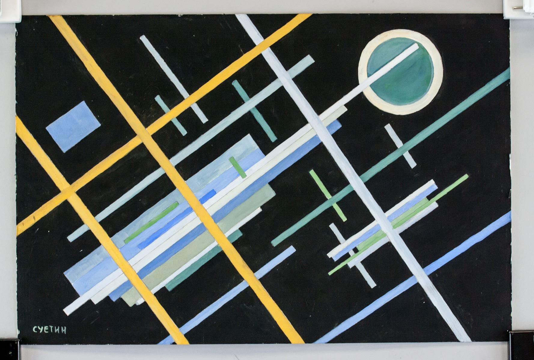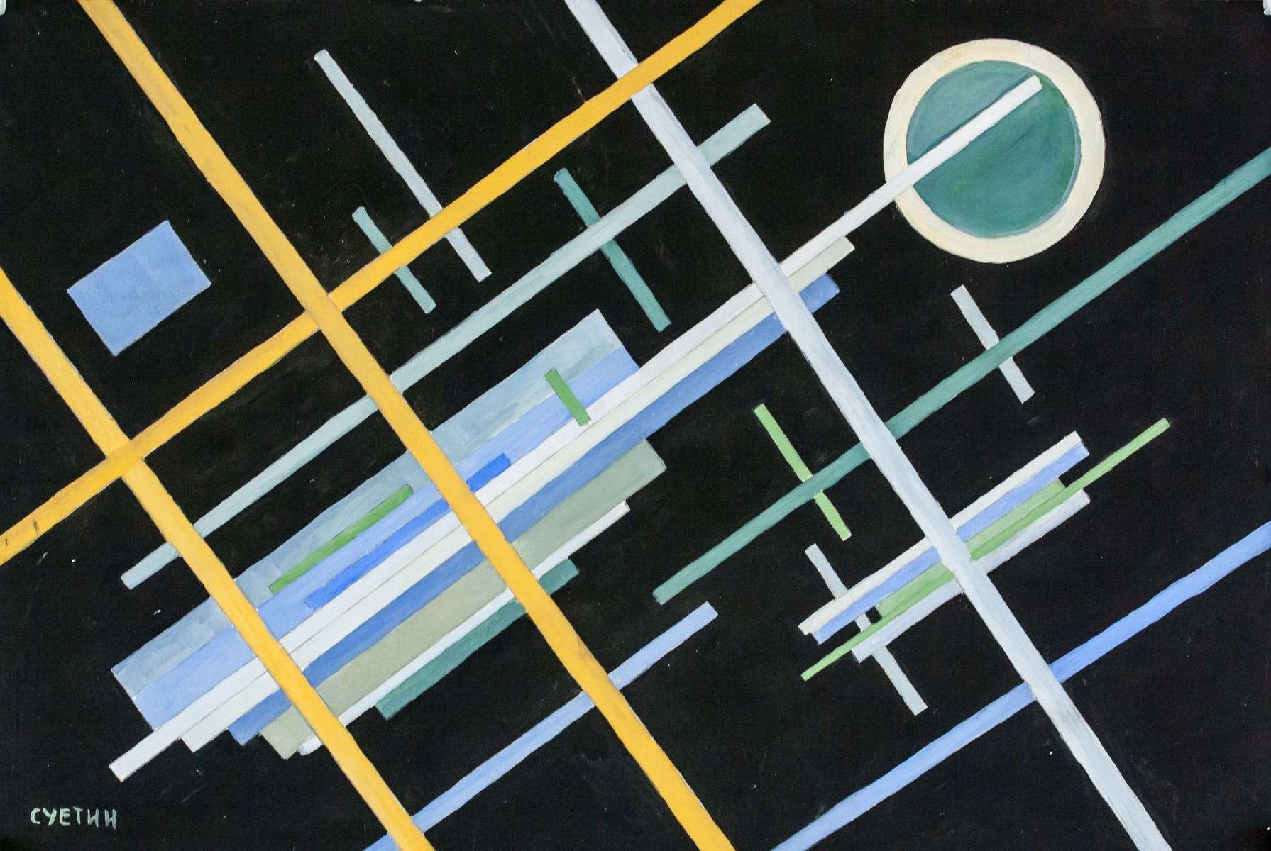 Goucahe on paper. Featuring a suprematist composition. Signed in Russian Cyrillic on the lower left corner. Attributed to Ilya Chashnik (1902-1929, Russian). 20 x 30 cm (8 x11.75 inches). PROVENANCE: This item has limited provenance from a Southern Ontario estate