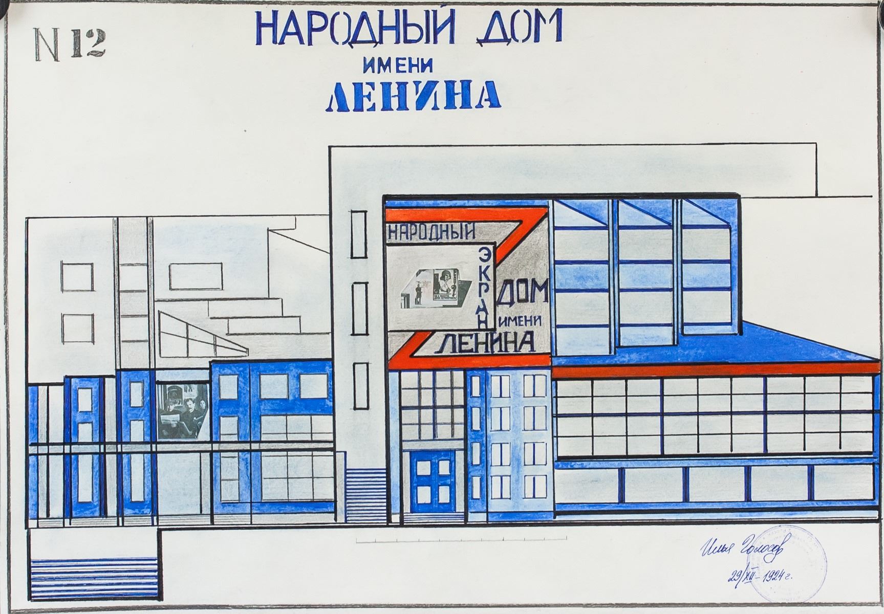 Gouache and graphite on paper. Signed in Cyrillic on the lower right corner and inscribed 29/XII - 1924. Stamped with three stamps with inscription on verso. Attributed to Ilya Golosov (1883-1945, Russian). 29 x 40 cm (11.5 x 16.5 in)