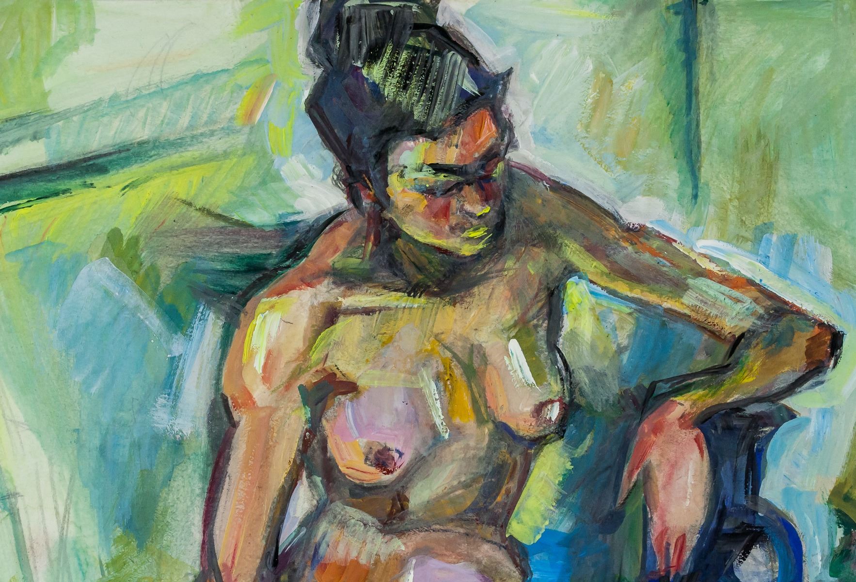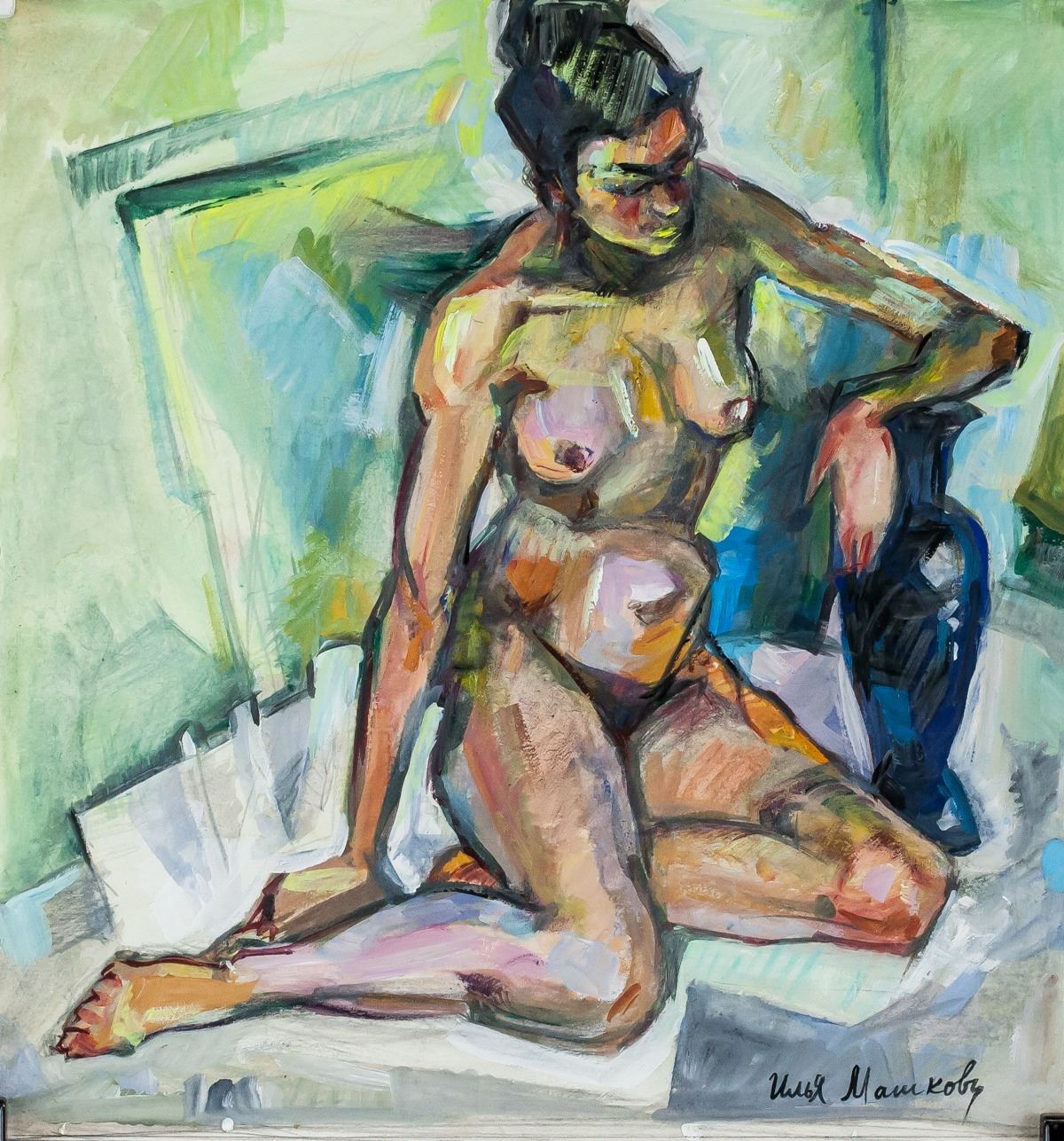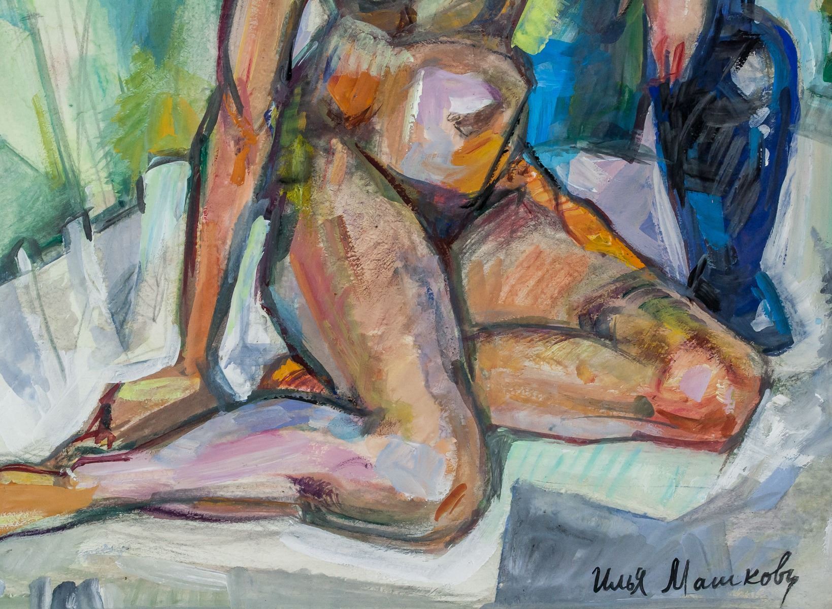 Gouache on paper. Featuring a fauvist nude female. Signed Ilya Mashkov in Russian Cyrillic on the lower right corner. Sketch on verso. Attributed to Ilya Mashkov (1881-1944, Russian). 23 x 21 cm (9 x 8.5 in). PROVENANCE: This lot carries limited provenance from a Southern Ontario estate