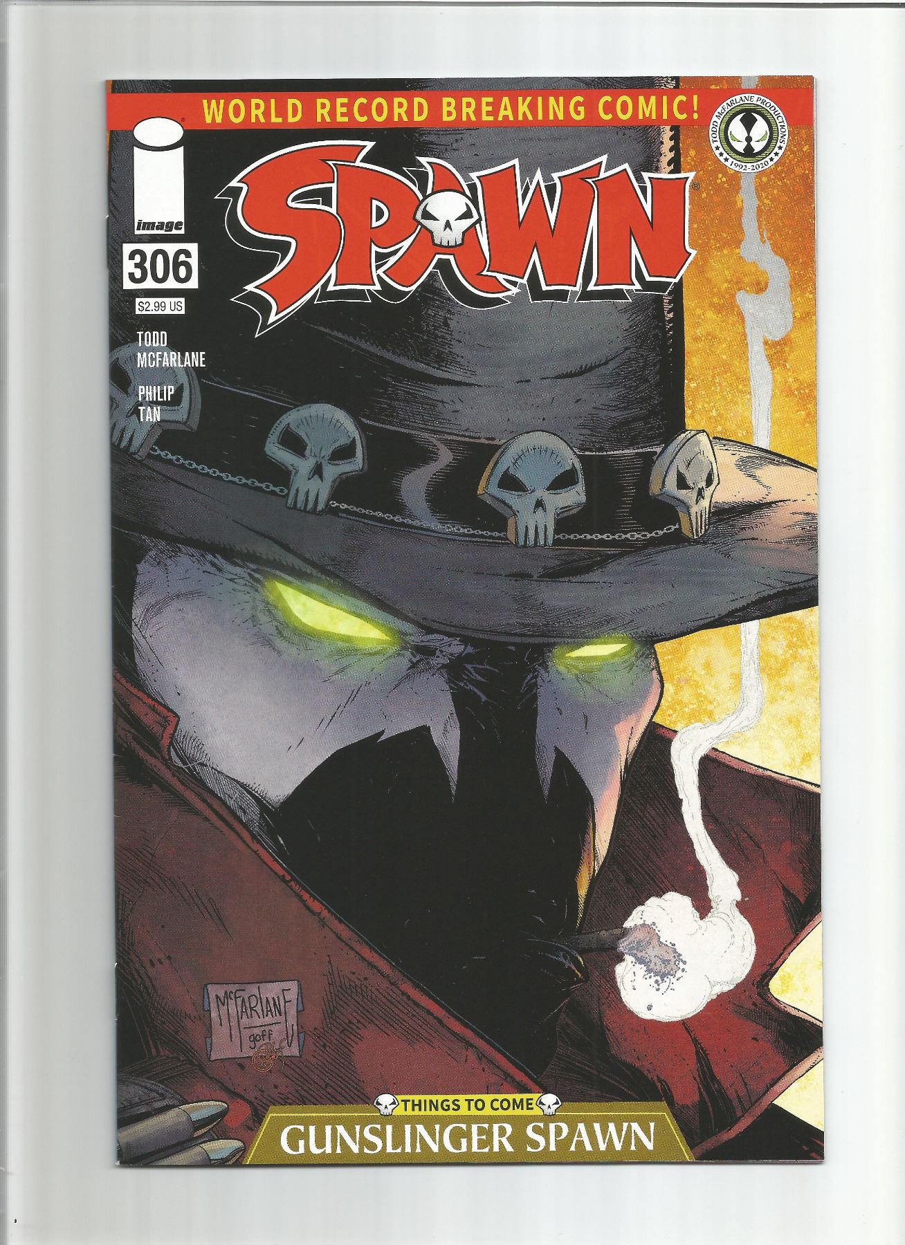 Spawn #306 (KEY) 1st appearance of Raptor, Low Print Todd McFarlane "Gunslinger" variant